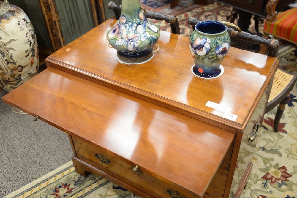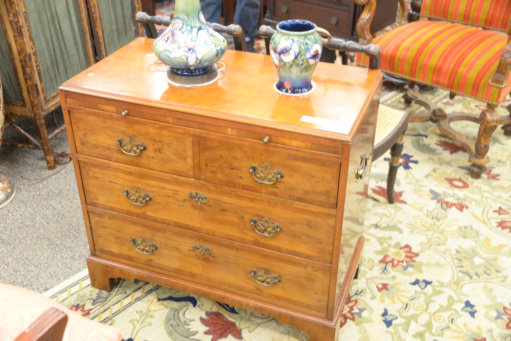 Lot 375: Hekman Burlwood Bachelors Chest, with pull out slide over two short over two long drawers on bracket base, height 29 1/2 inches, top…