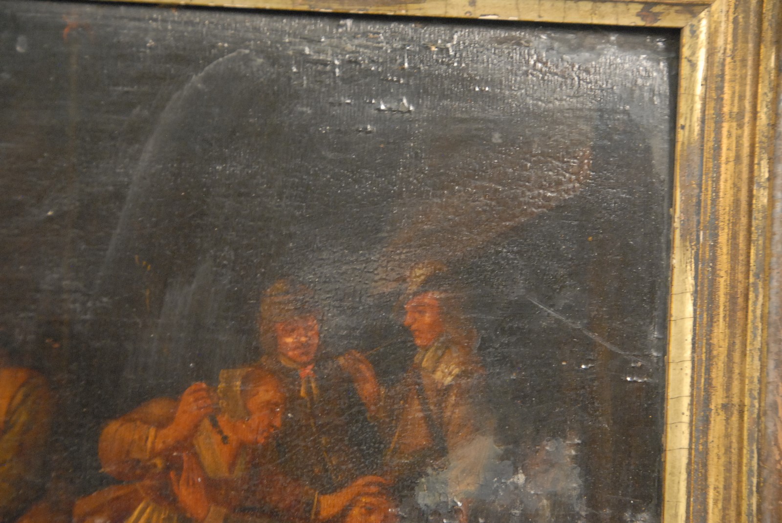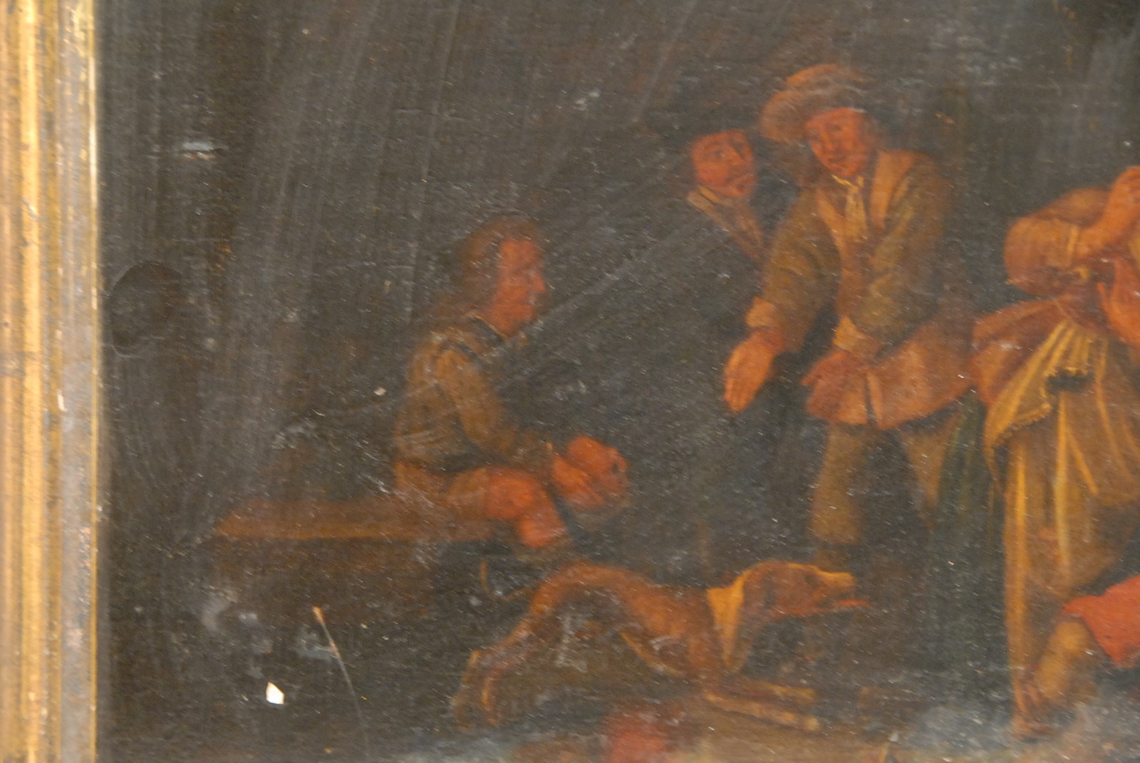 Interior Scene PLAYING GAMES oil on chestnut panel unsigned 17th/18th century 11 1/2 x 15