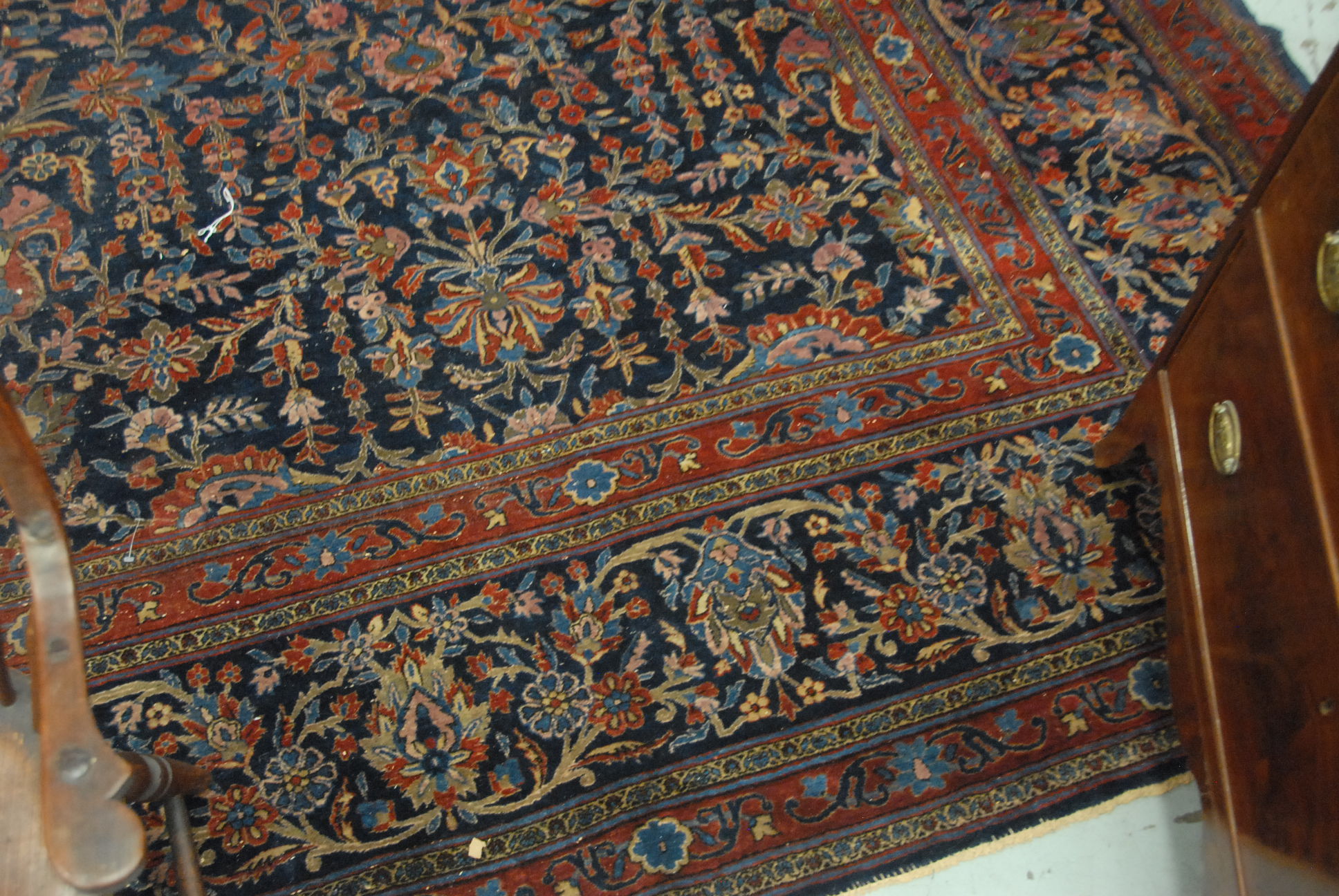 Lot 375: Kashan Oriental carpet some wear. 12′ x 19’6 Provenance: Property from The Estate of Elizabeth Tishler of Middletown, Connecticut.