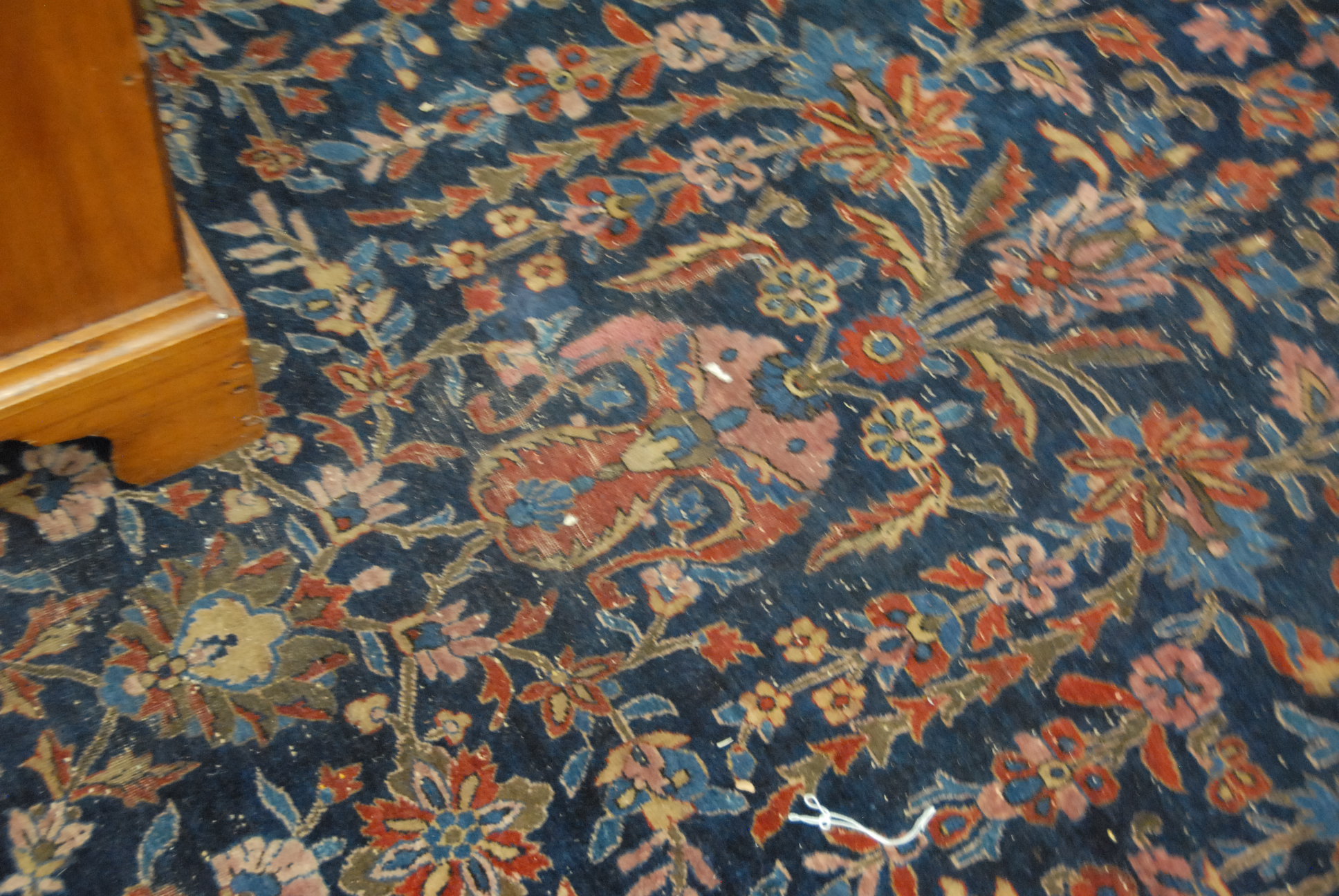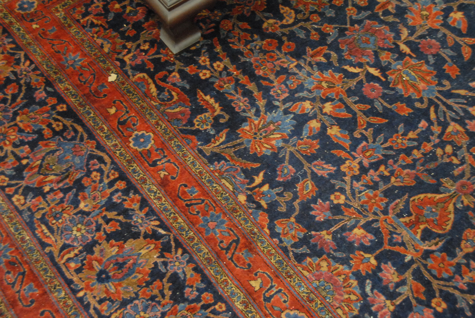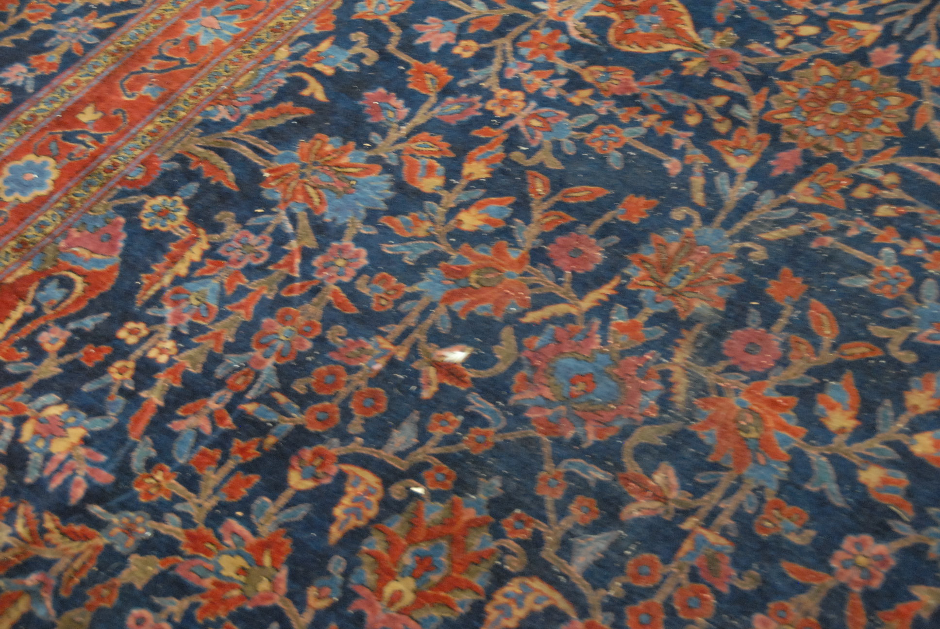 Kashan Oriental carpet some wear. 12′ x 19’6 Provenance: Property from The Estate of Elizabeth Tishler of Middletown, Connecticut.