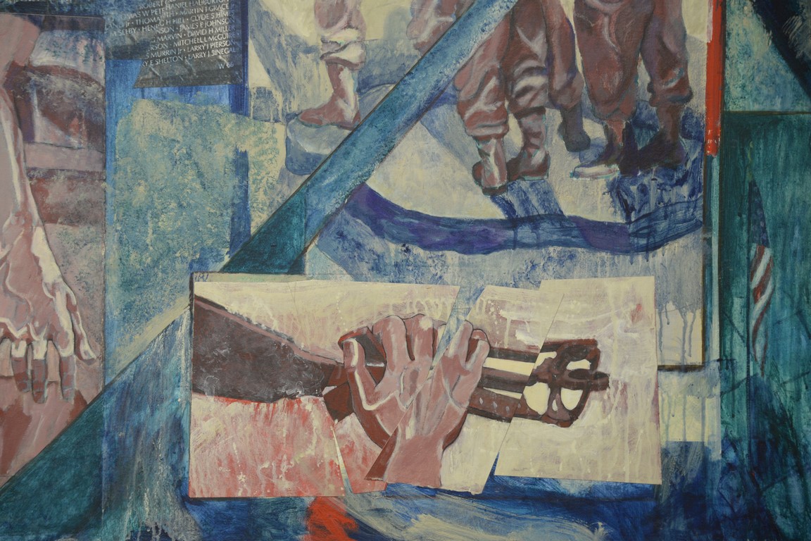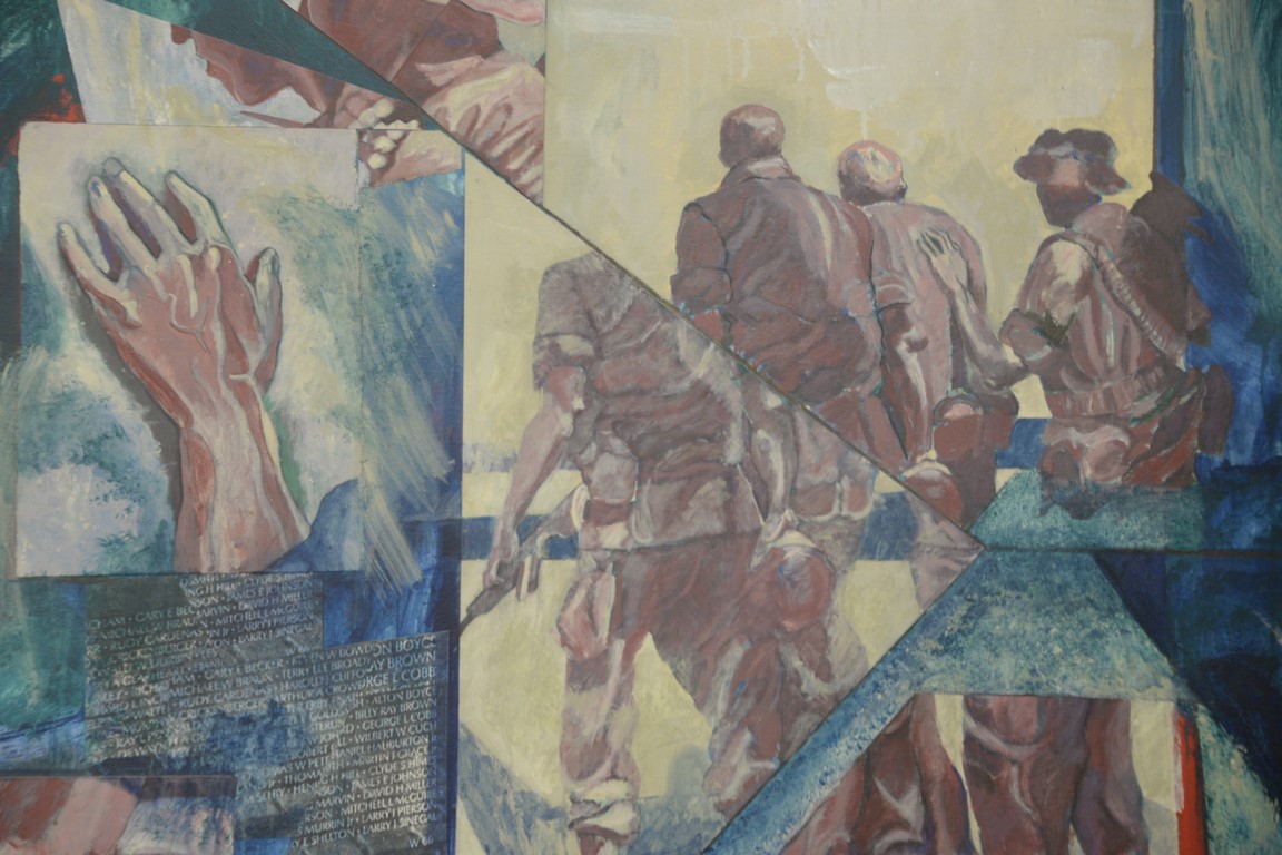 Mcolt, collage, American Soldiers, signed lower right Mcolt 1985, 49 x 39 1/2.