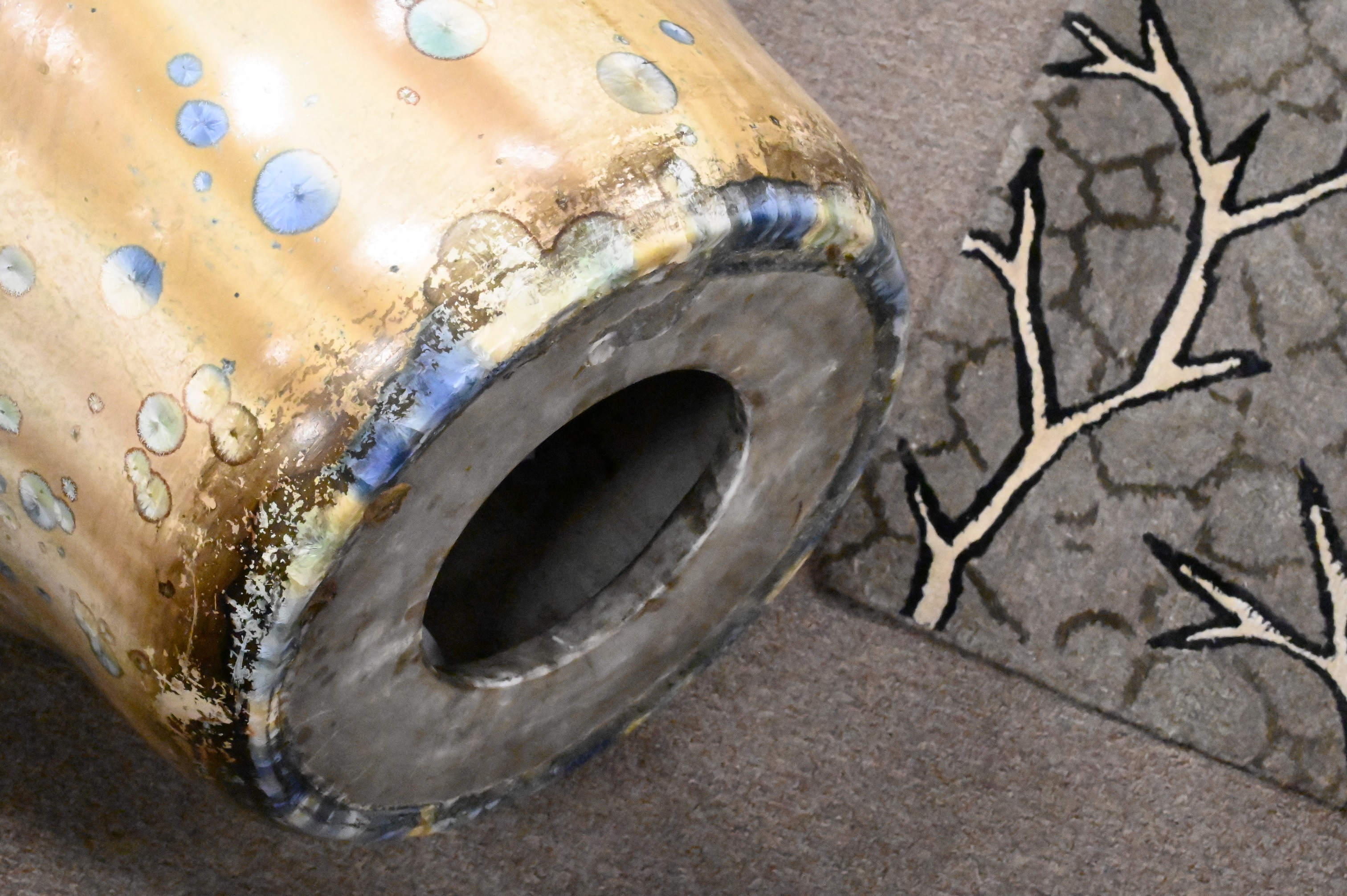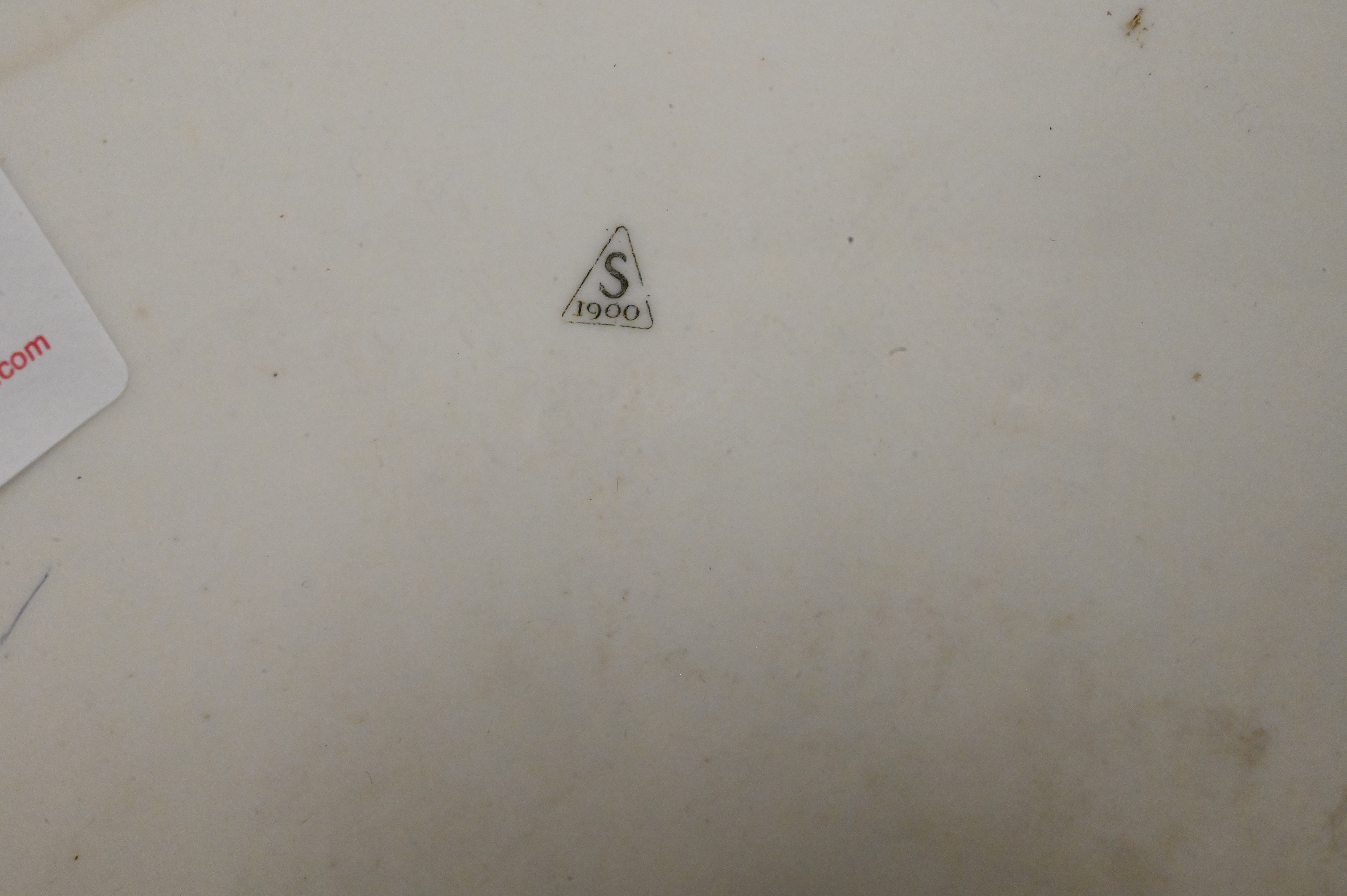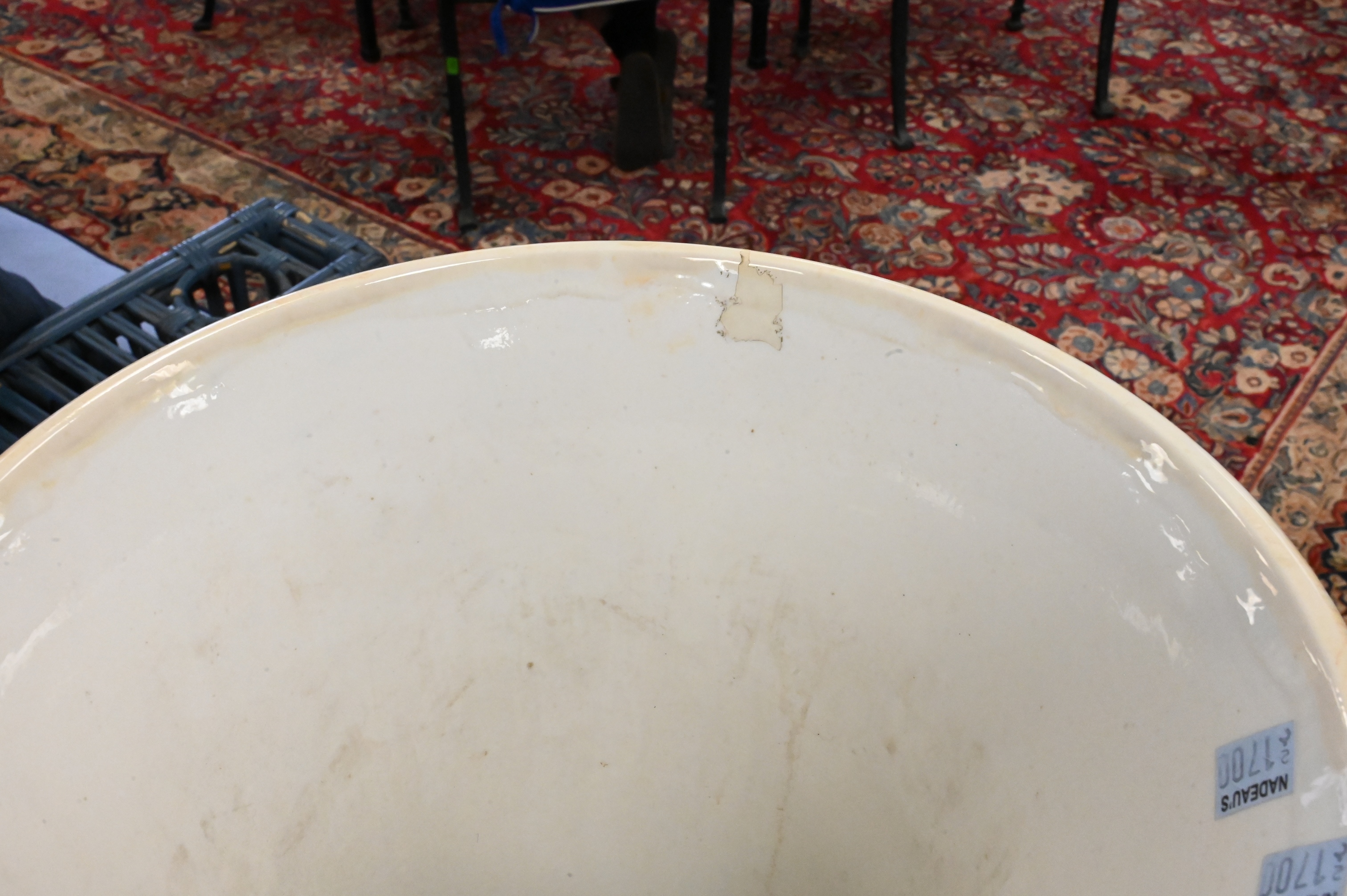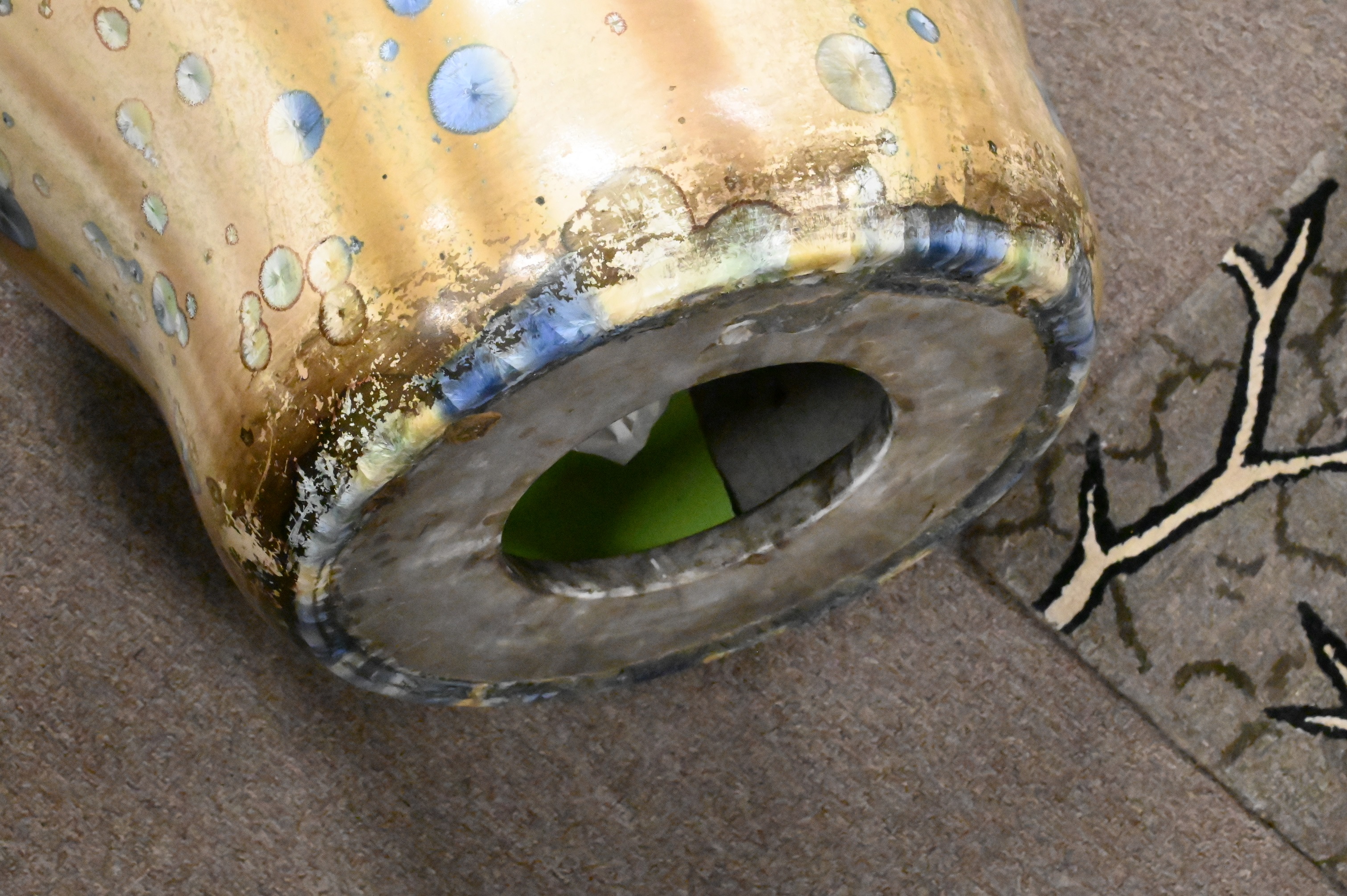 crystalline glazed in blue and green French 1900, having incised exposition international market number on interior rim, C 95 11 Pn possibly made for the Paris Universal Exhibition or Paris France World’s Fair, large objets d’art, also having a S +900 inside a triangle drill bottom