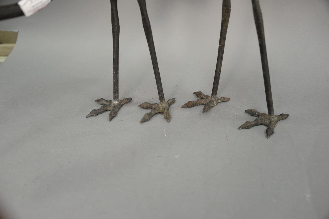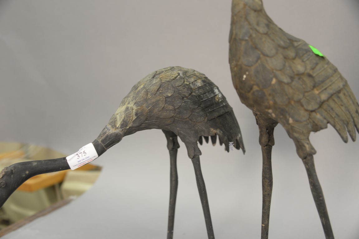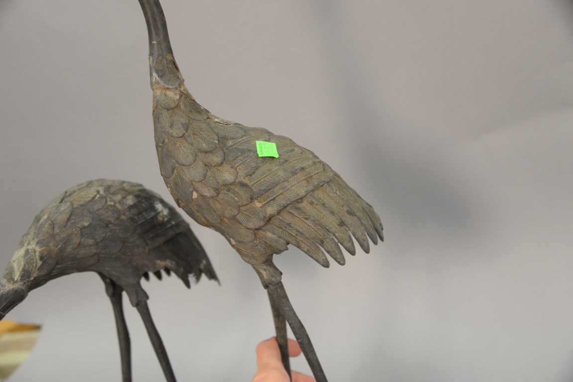 Pair of bronze cranes. ht. 13in. & 24 1/2in.