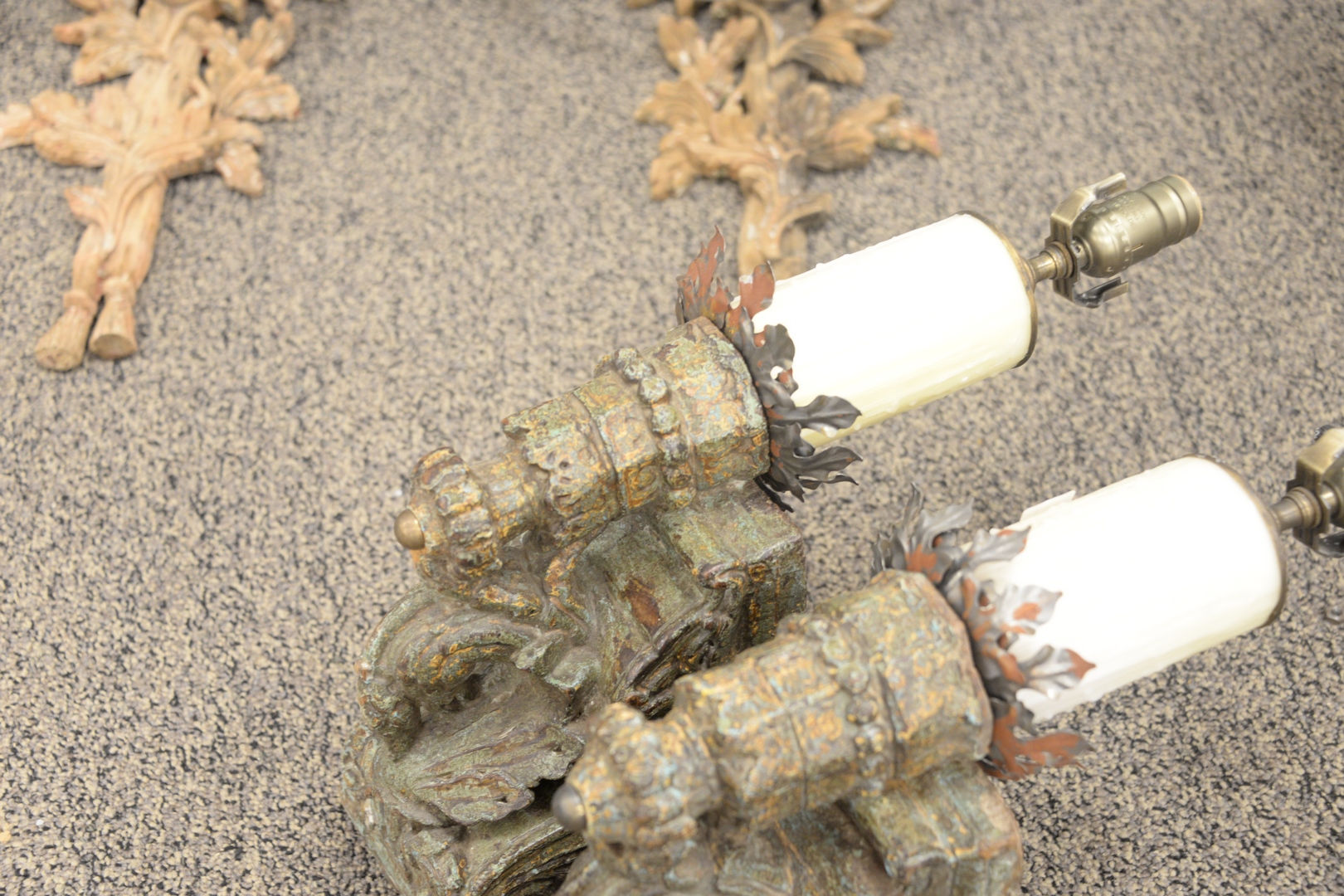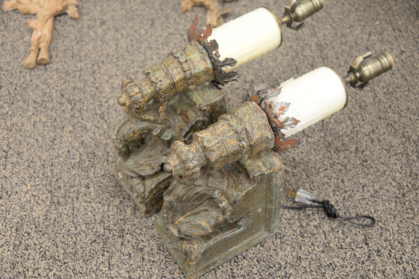 Lot 375: Pair of Painted Wood Sconces, having faux candle shaft, length 18 inches, width 5 inches, depth 12 inches.
