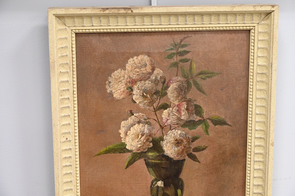 Shepard Alonzo Mount (1804 – 1868), still life of flowers, oil on board, signed lower right S.A. Mount, 12 1/2 x 8 1/2 inches.
