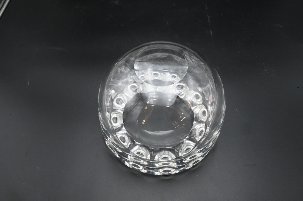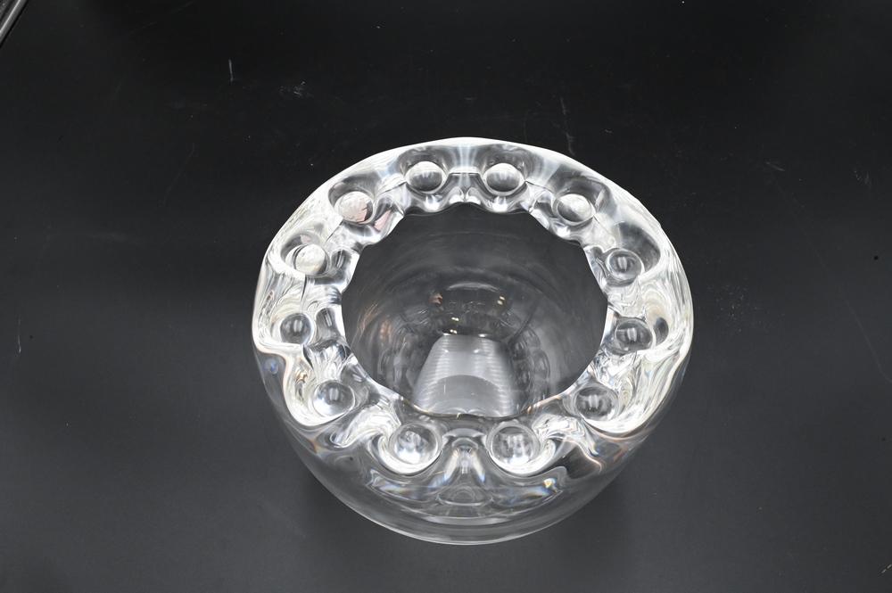 Lot 376: Large Steuben Glass Bowl, having ripple top rim, signed Steuben on bottom, height 6 1/4 inches, diameter 8 3/4 inches.