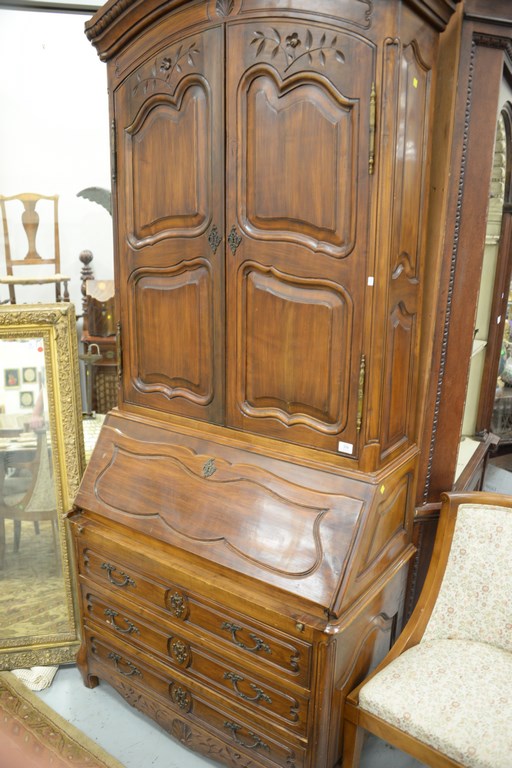 Louis XV style secretary desk in two parts, ht. 89 in. wd. 38 in.