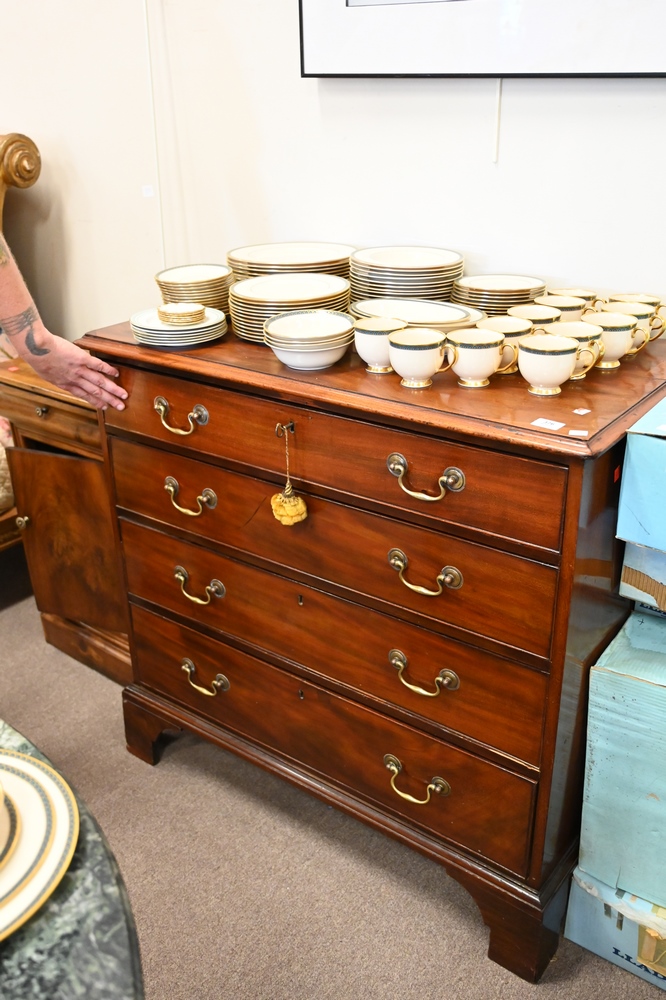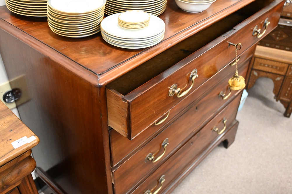 Lot 376: Mahogany Four Drawer Chest, on bracket base, height 40 inches, width 38 inches.