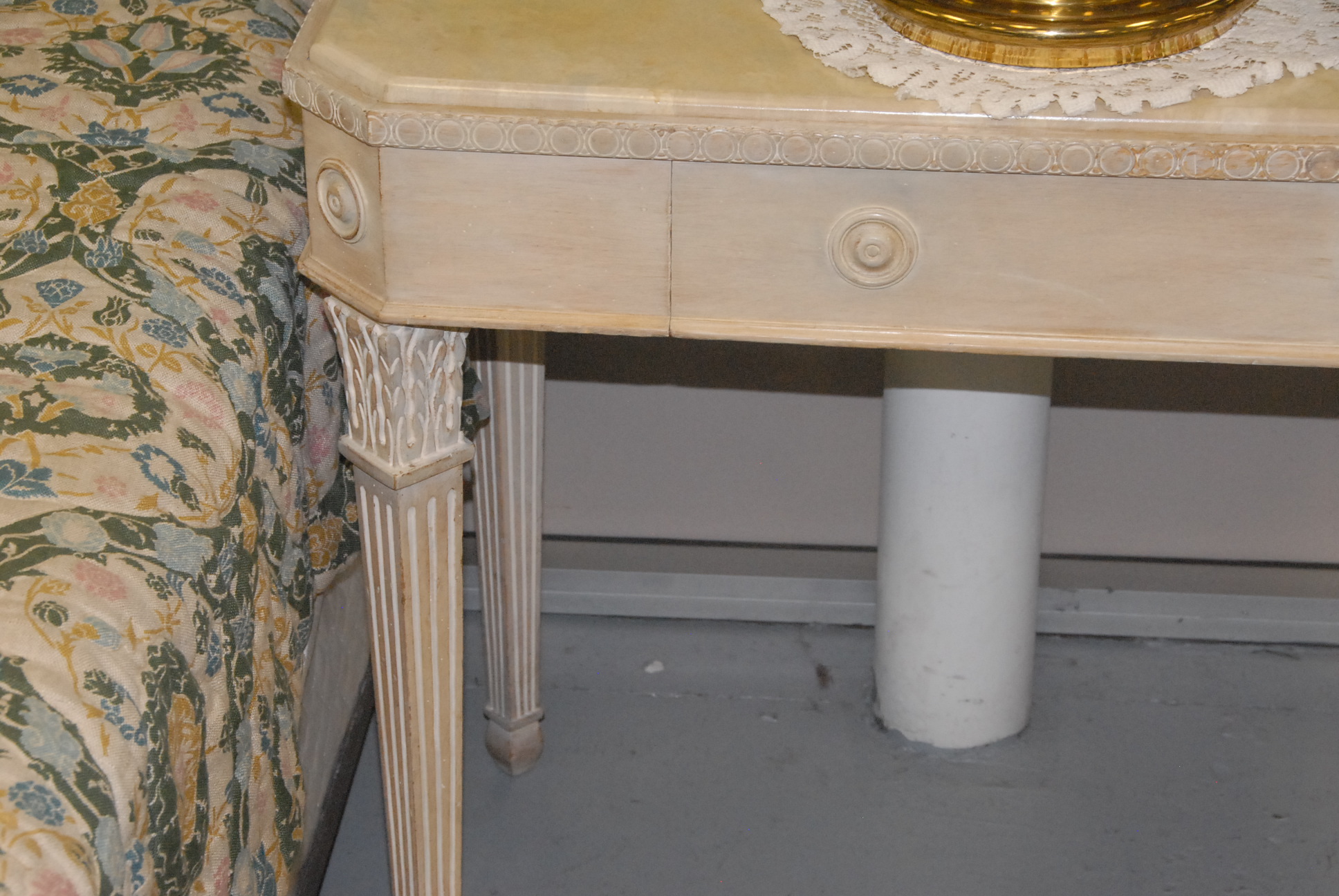 Paint decorated Continental style one drawer table. Provenance: property from a home in Rockville Center, New York which was decorated by Iris Apfel.