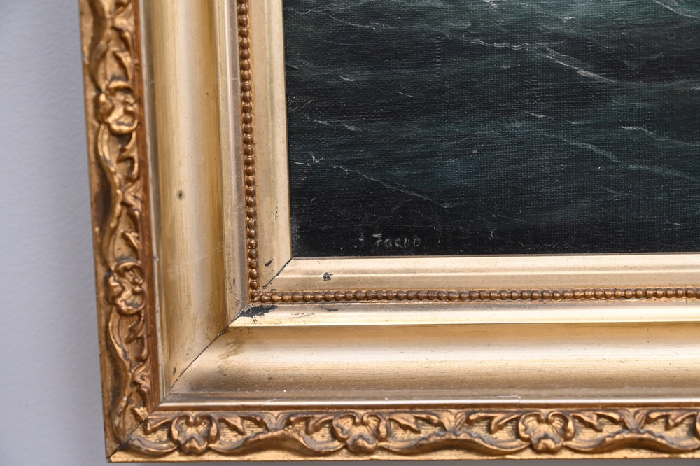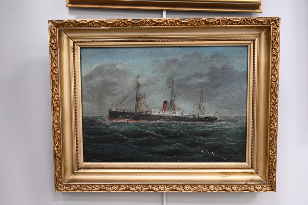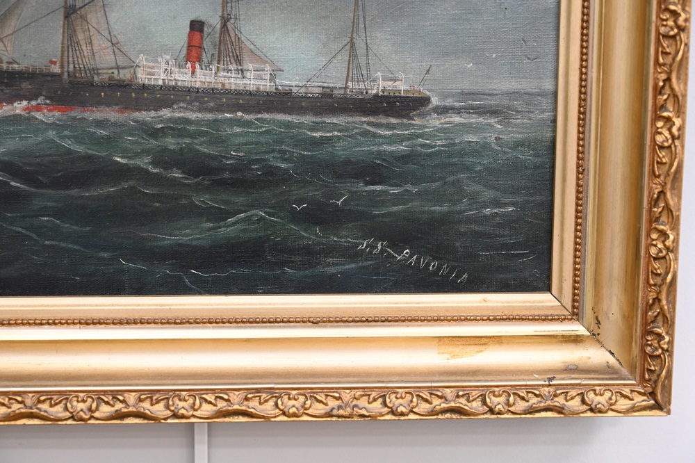 Lot 376: S.S. Pavonia Steam Yacht, oil on canvas, unknown artist, signed lower left A. Jacobsen, 10 x 14 inches.