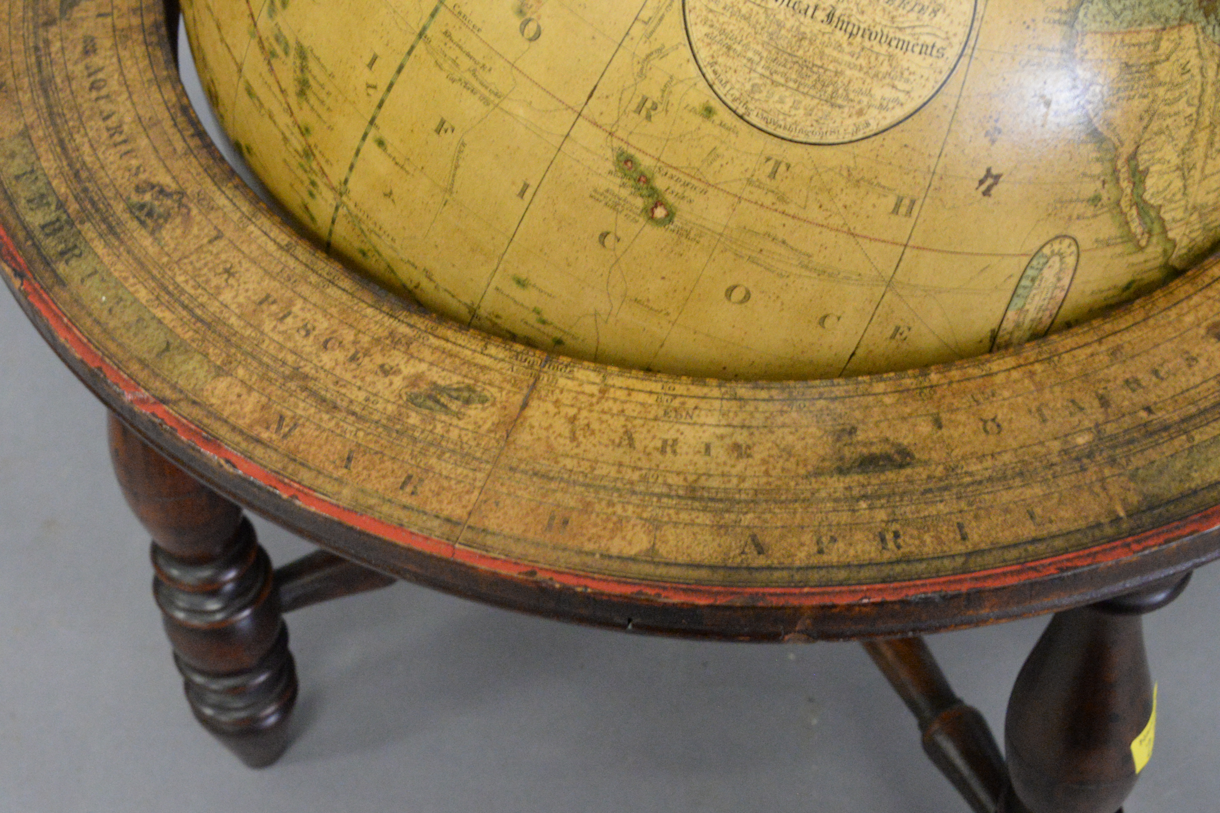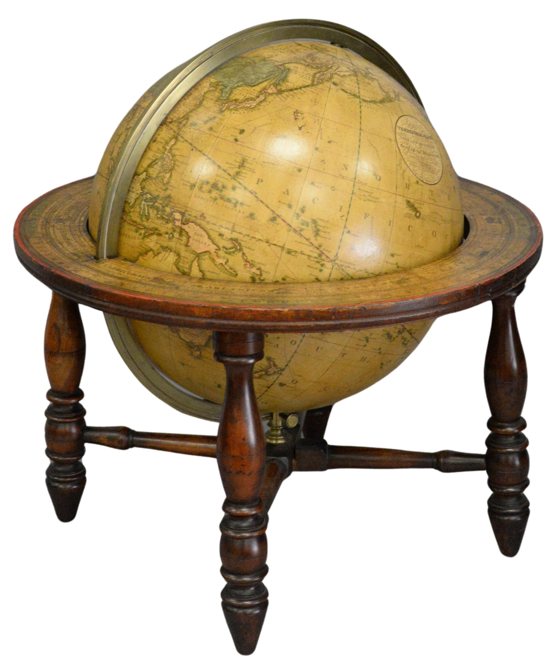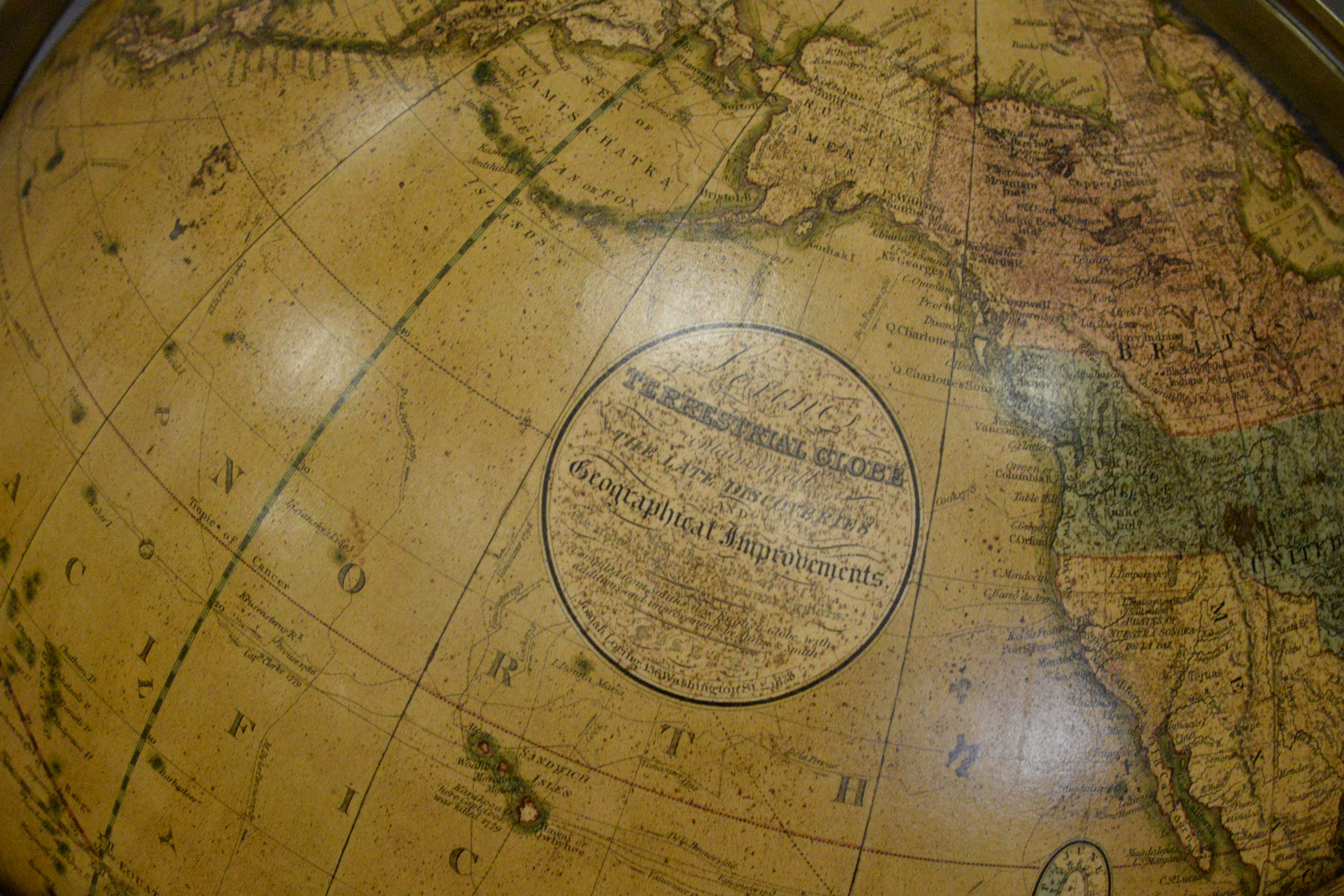 Table Globe on Turned Legs, probably reproduction globe on older base, height 18 inches, width 16 inches