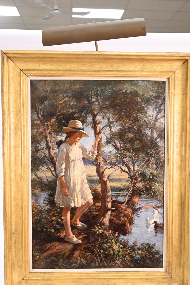 William Kay Blacklock (British, 1872 – 1922), A Quiet Backwater, oil on canvas, signed lower left W. Kay Blacklock, 33″ x 23 1/2″. Provenance: Richard Green Gallery, London, 1996, paid $45,000; Private collection New York City.