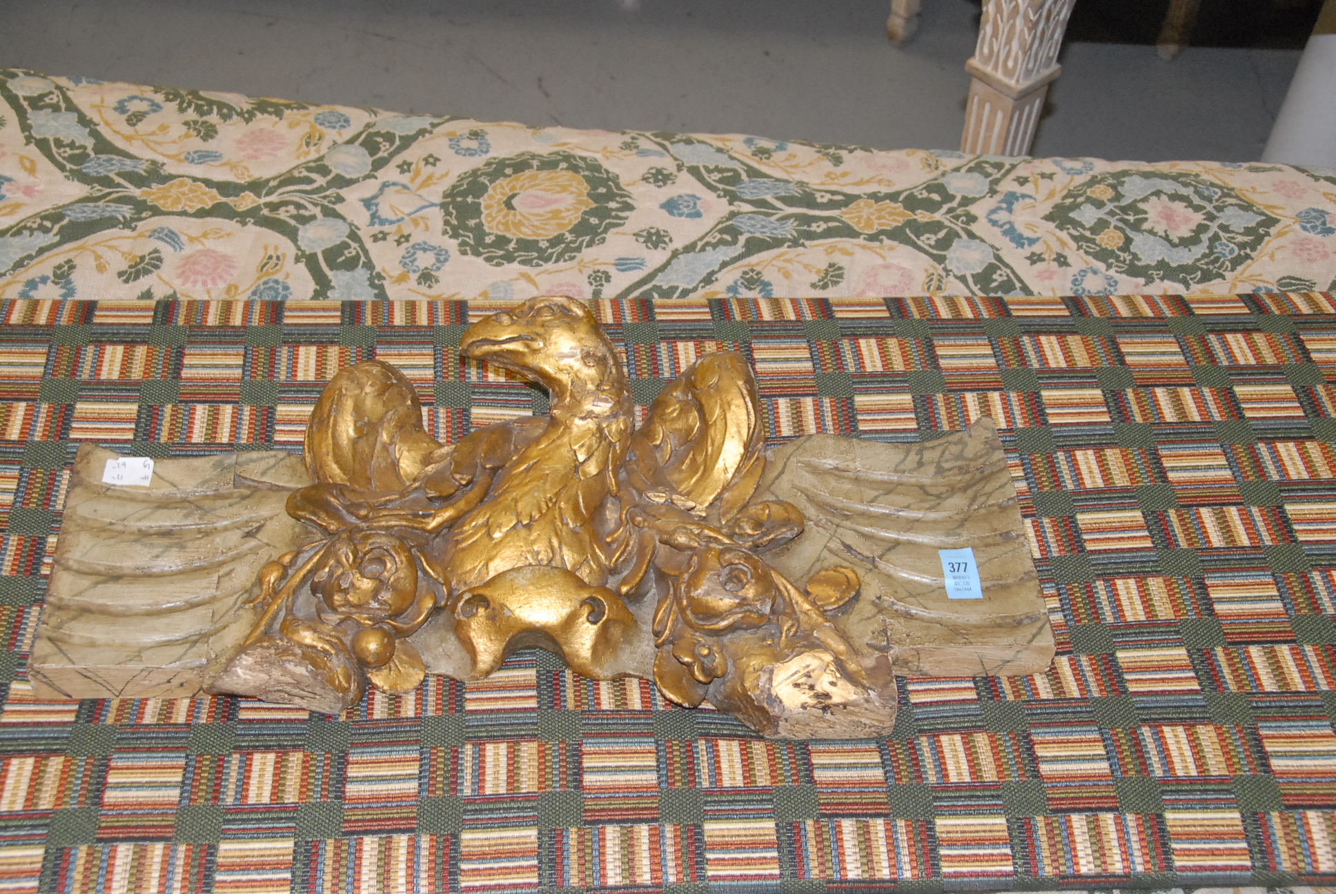 Lot 377: Checkered upholstered board mounted with gold gilt eagle