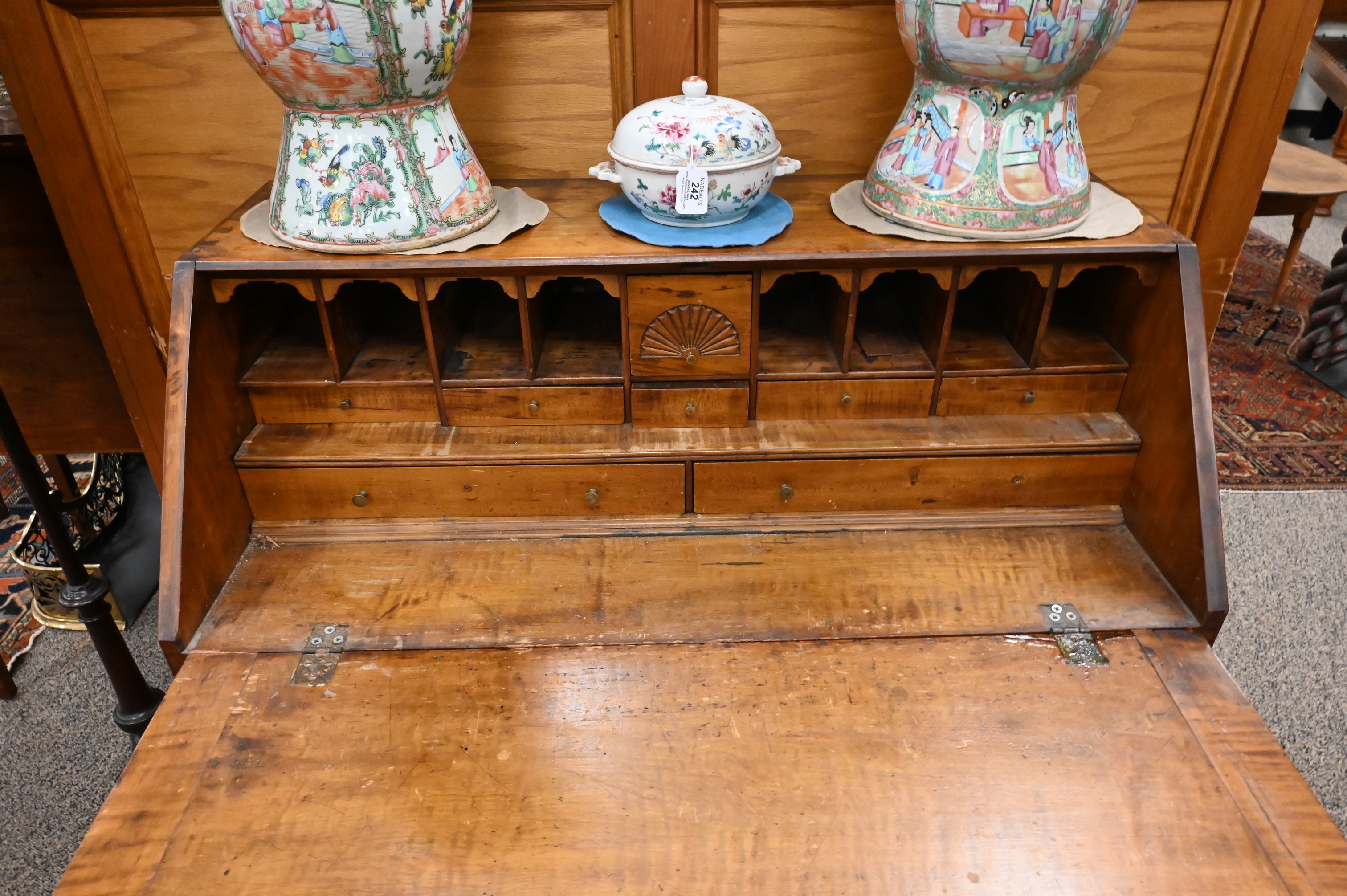 Lot 377: Chippendale Tiger Maple Slant Front Desk
