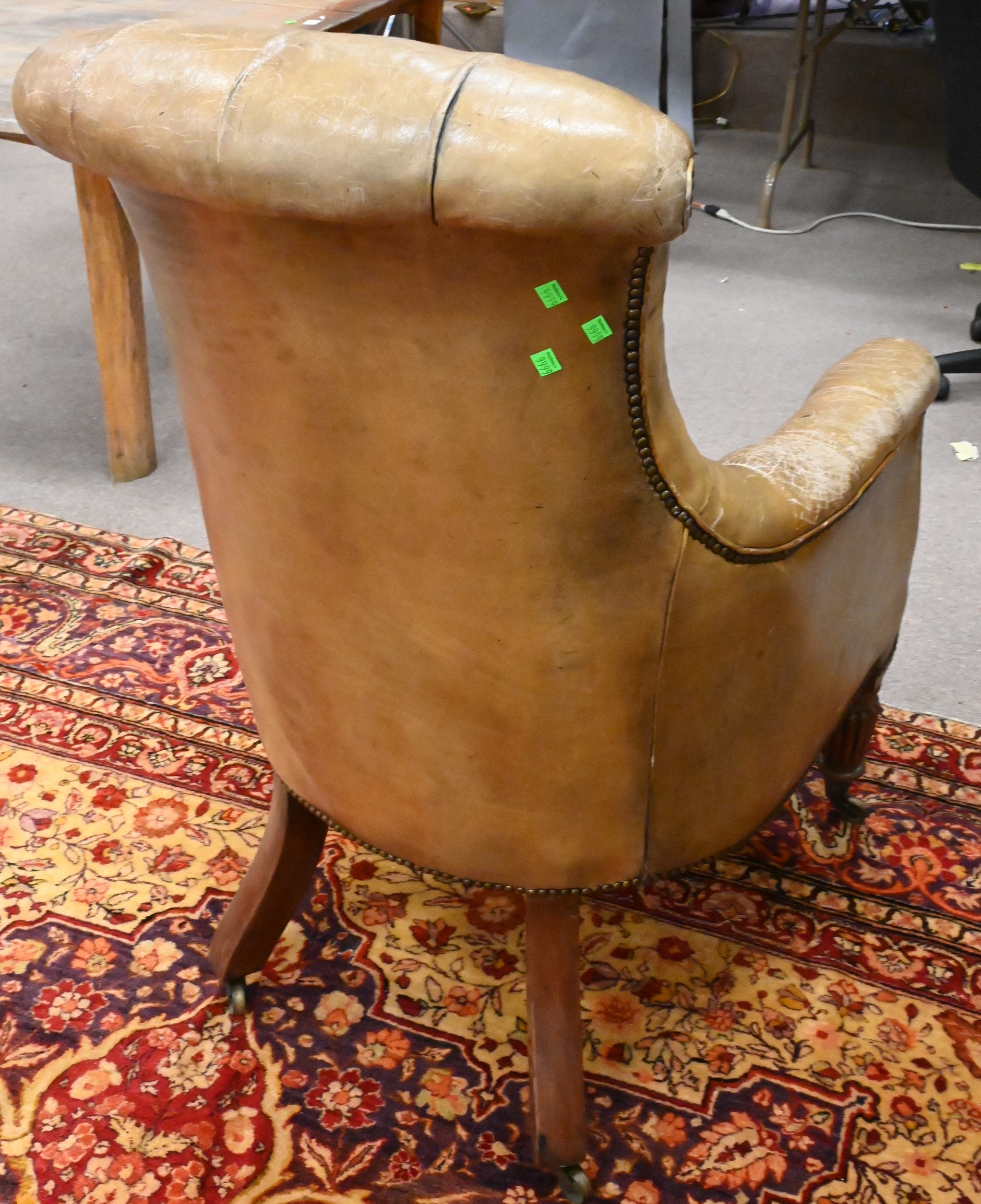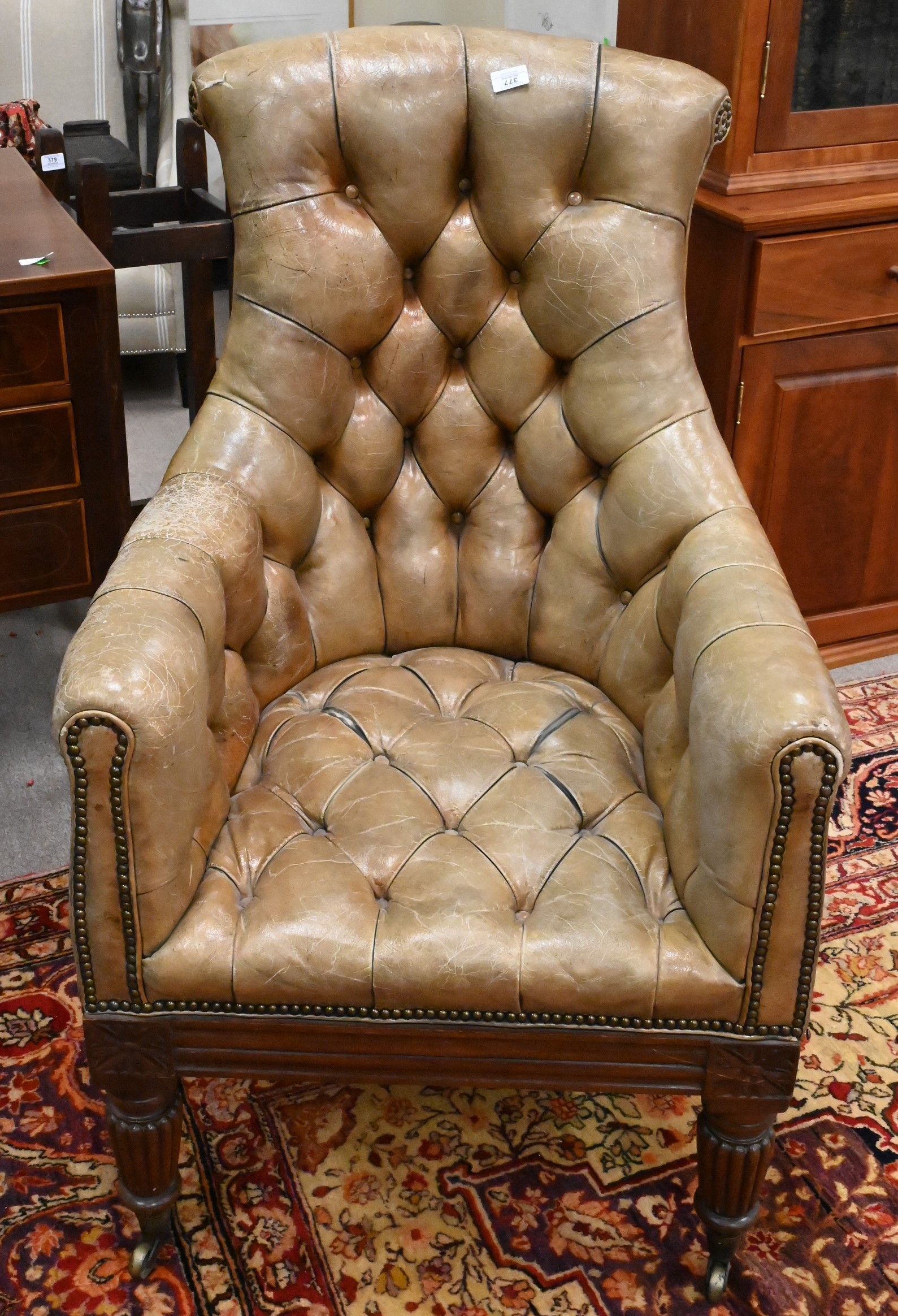 Lot 377: George IV Mahogany Armchair with Tufted Leather Upholstery