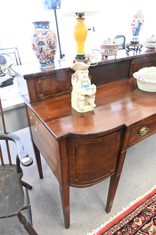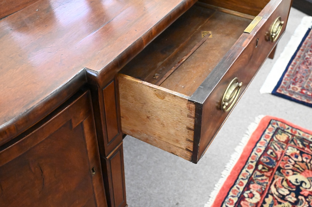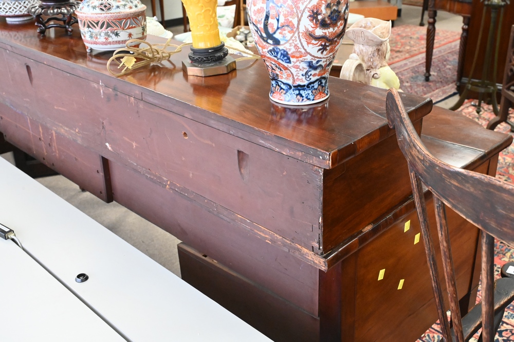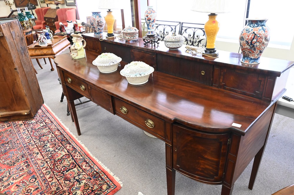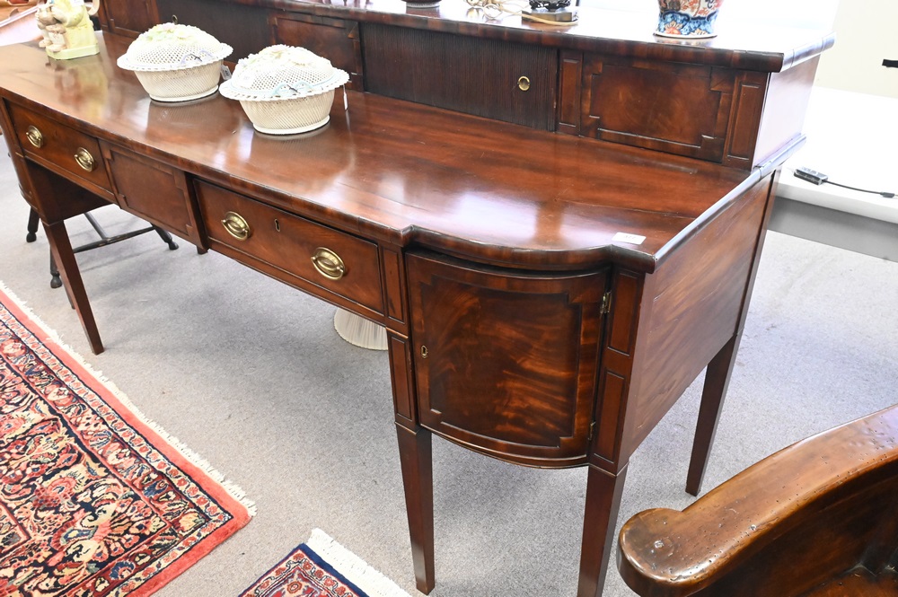 Irish/English Mahogany Sideboard, having three drawers on square tapered legs, height 41 1/2 inches, width 83 inches.