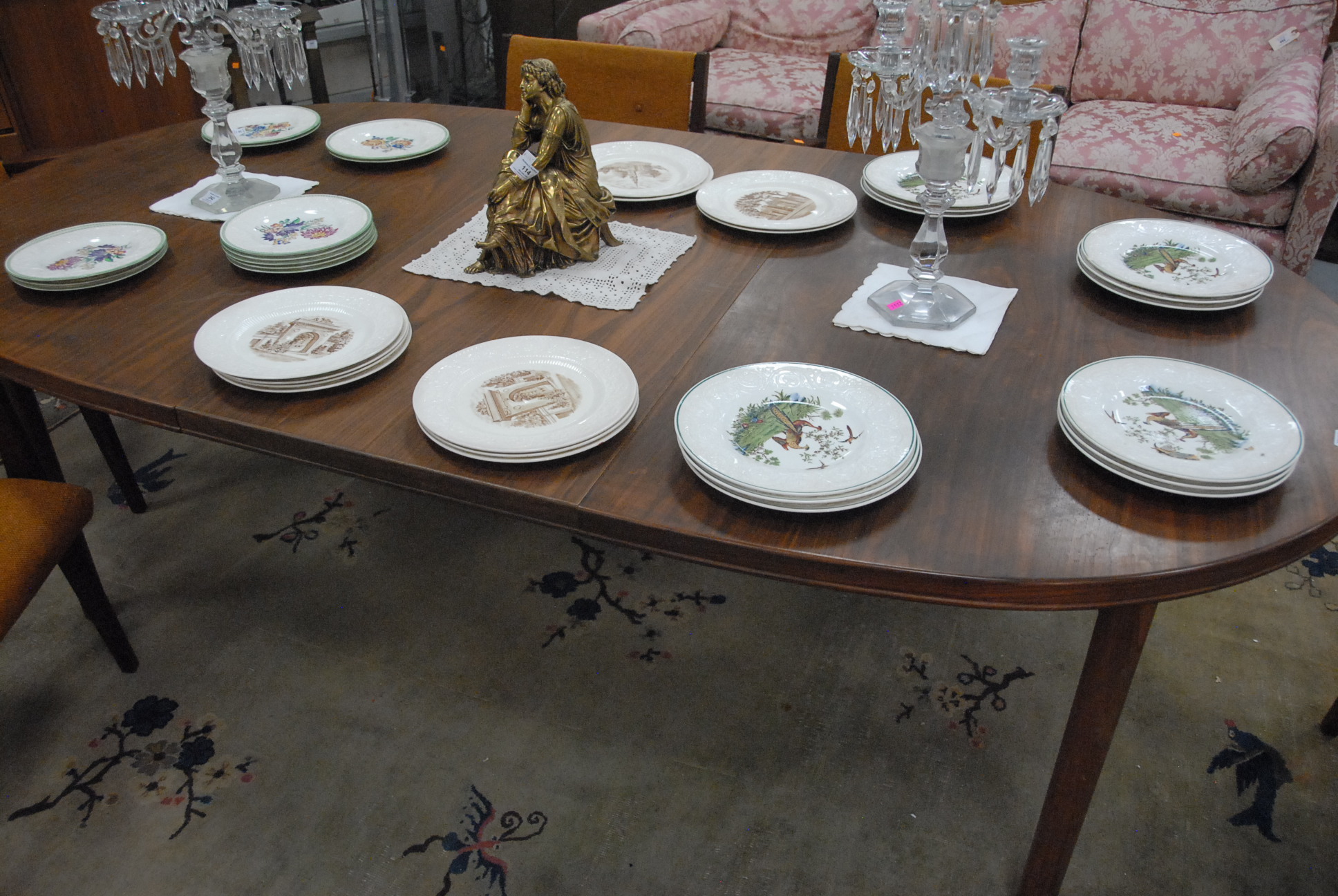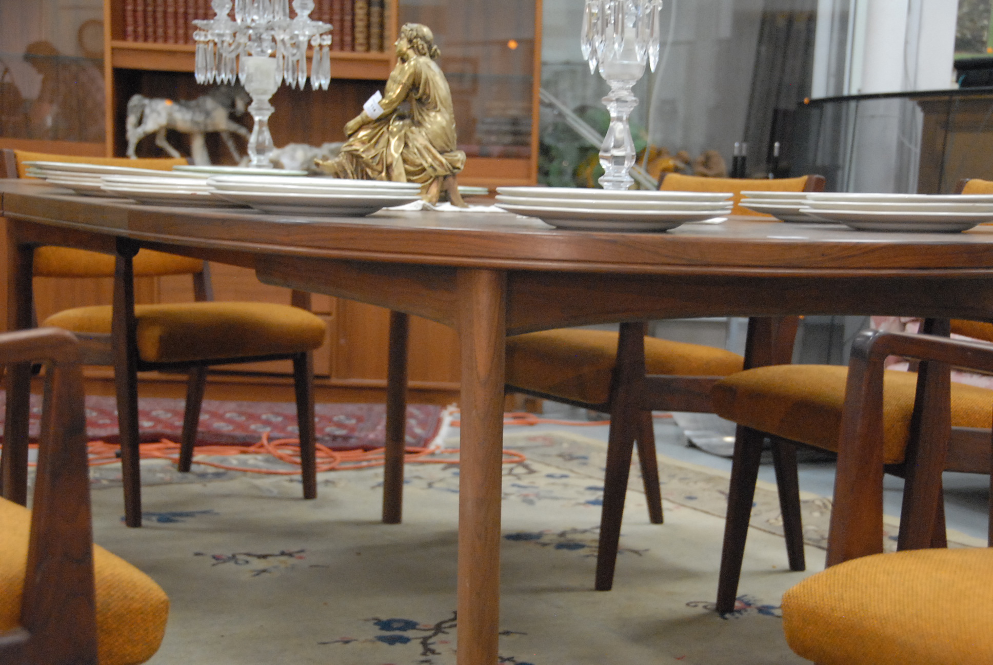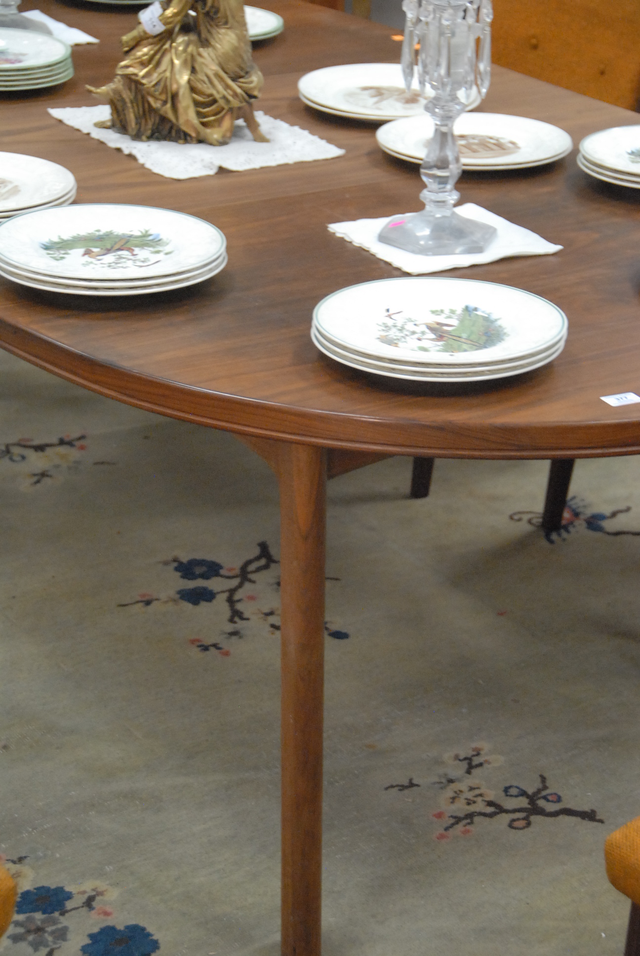 Lot 377: Jens Risom walnut dining table with three 22 inch leaves very good condition, ht. 28in. top: 70 x 48 opens to 136in.
