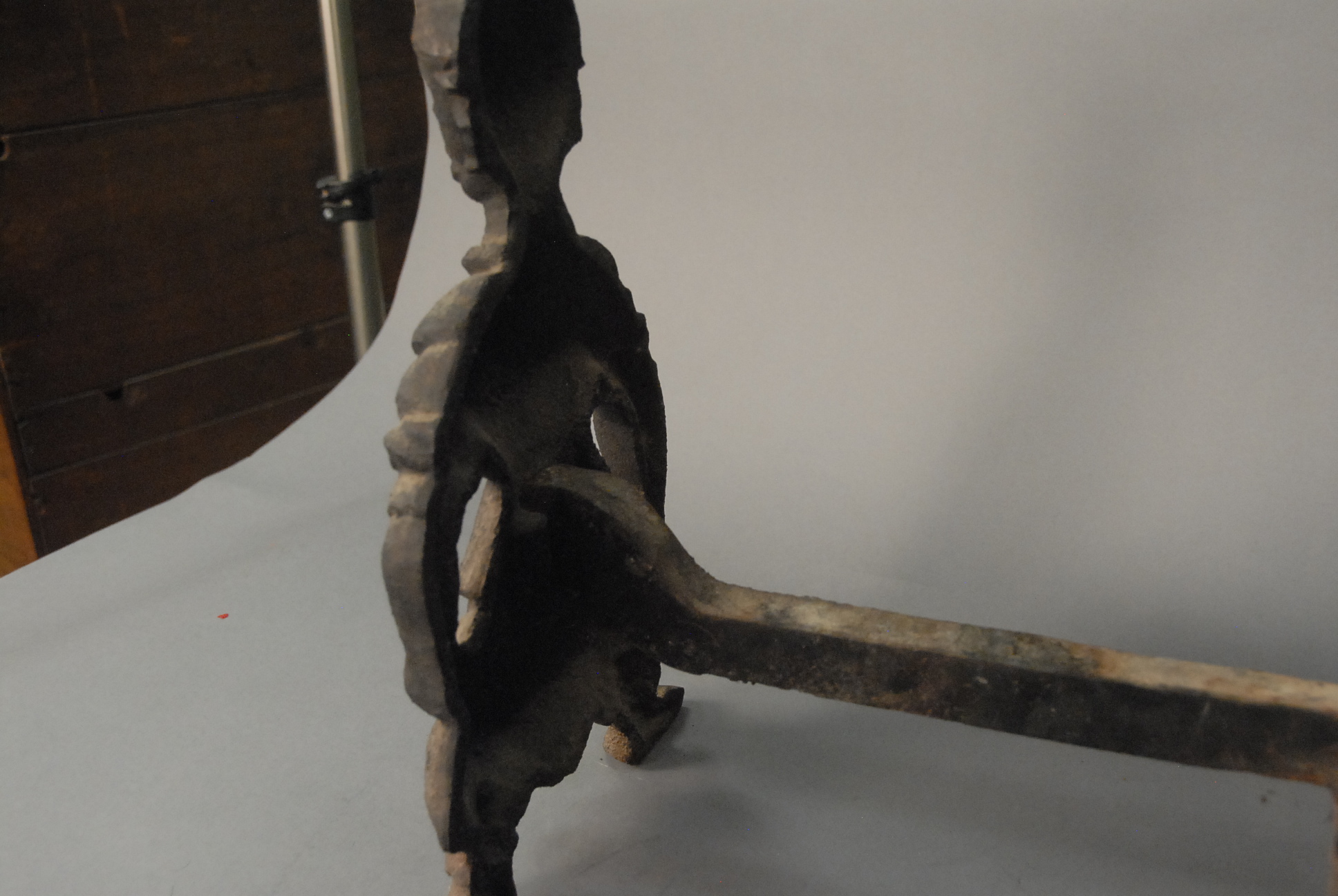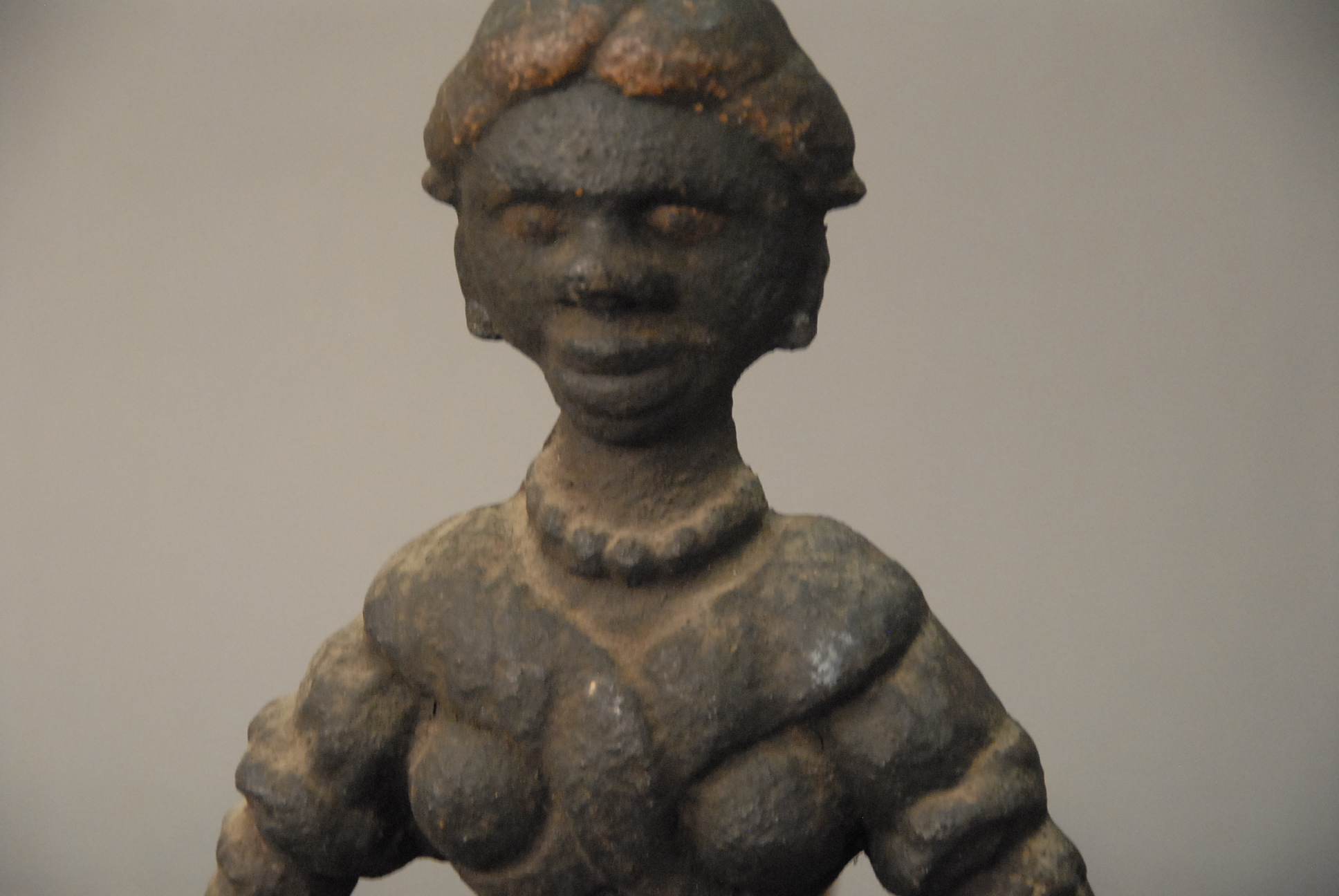 Lot 377: Pair of iron figural andirons, black man and woman marked Tozer Engine Co. Columbia S.C. ht. 17 in.