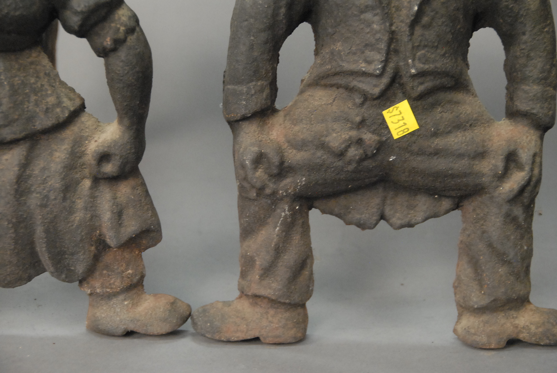 Pair of iron figural andirons, black man and woman marked Tozer Engine Co. Columbia S.C. ht. 17 in.