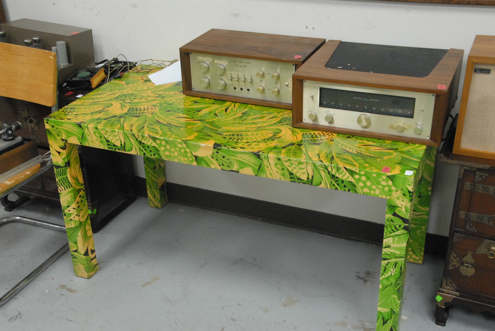 Lot 377: Parson’s table decorated with leaves, ht. 26in. lg. 48in.