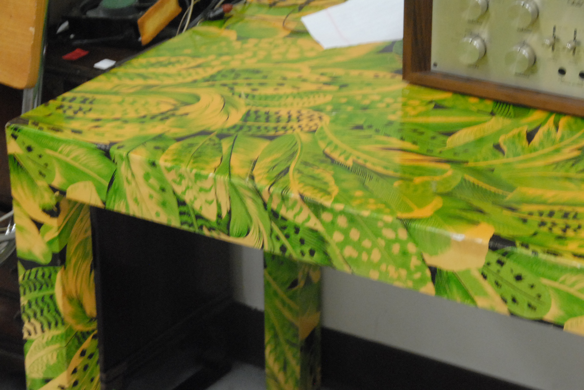 Parson’s table decorated with leaves, ht. 26in. lg. 48in.