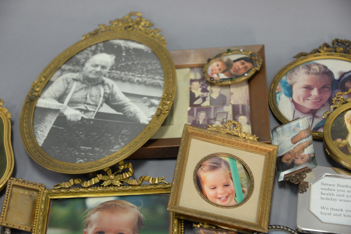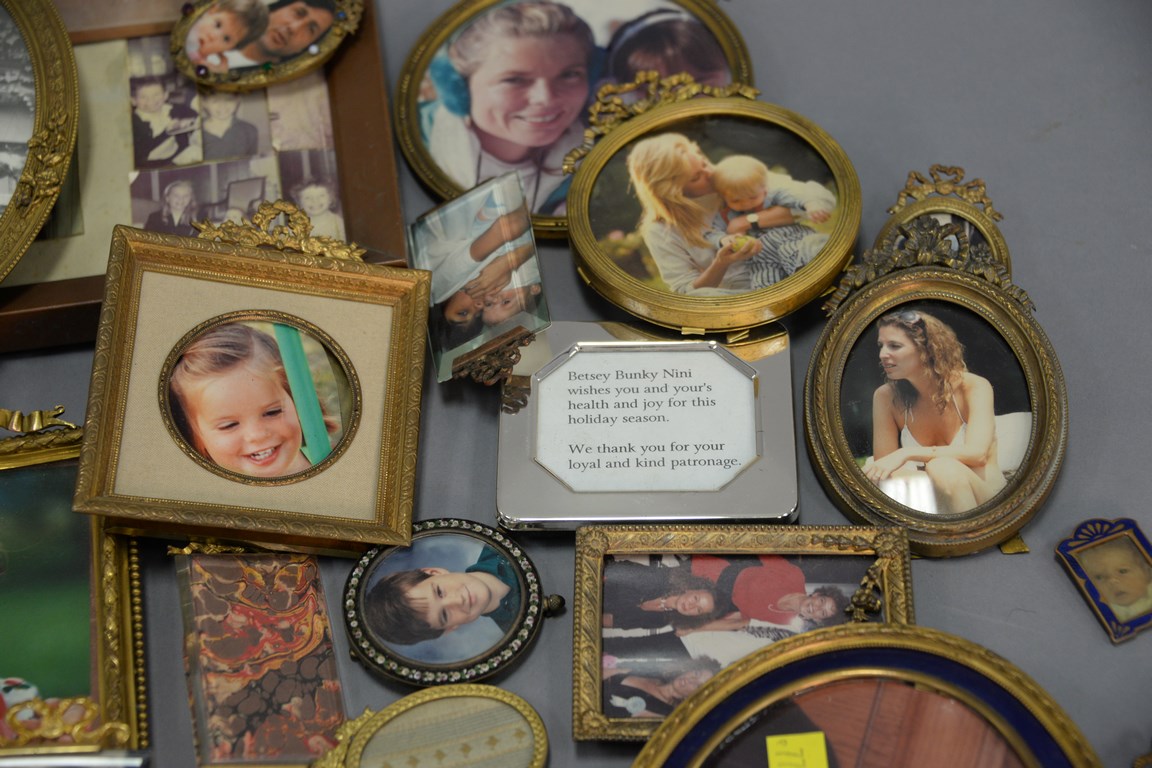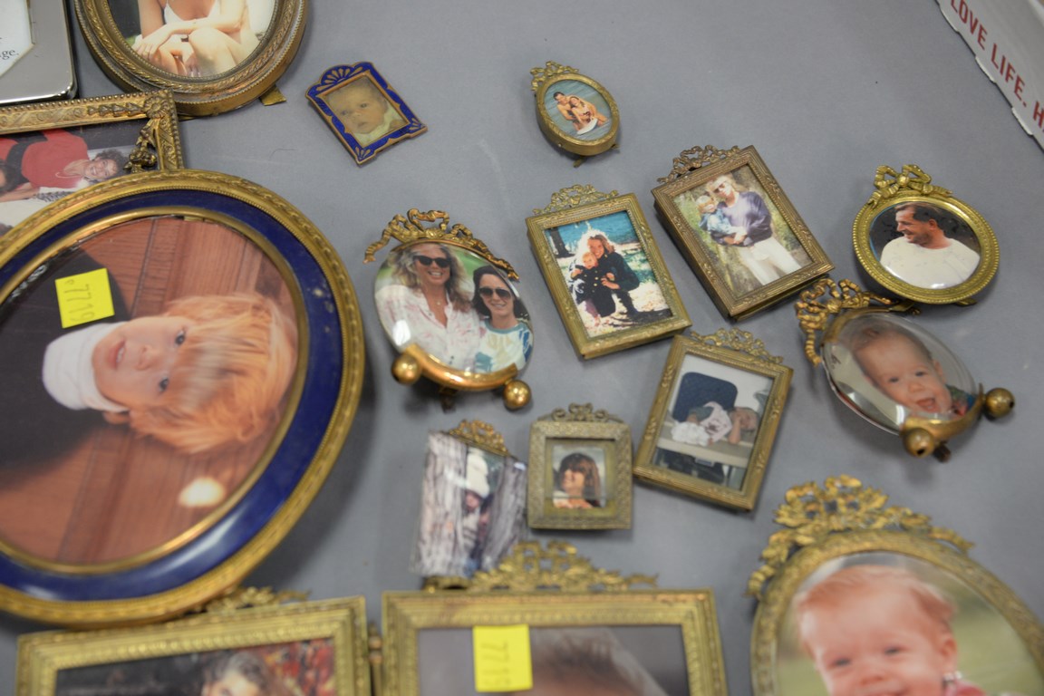 Three boxes with picture frames, brass, micro mosaic, French, etc.