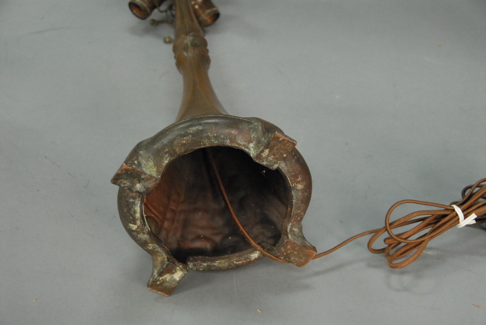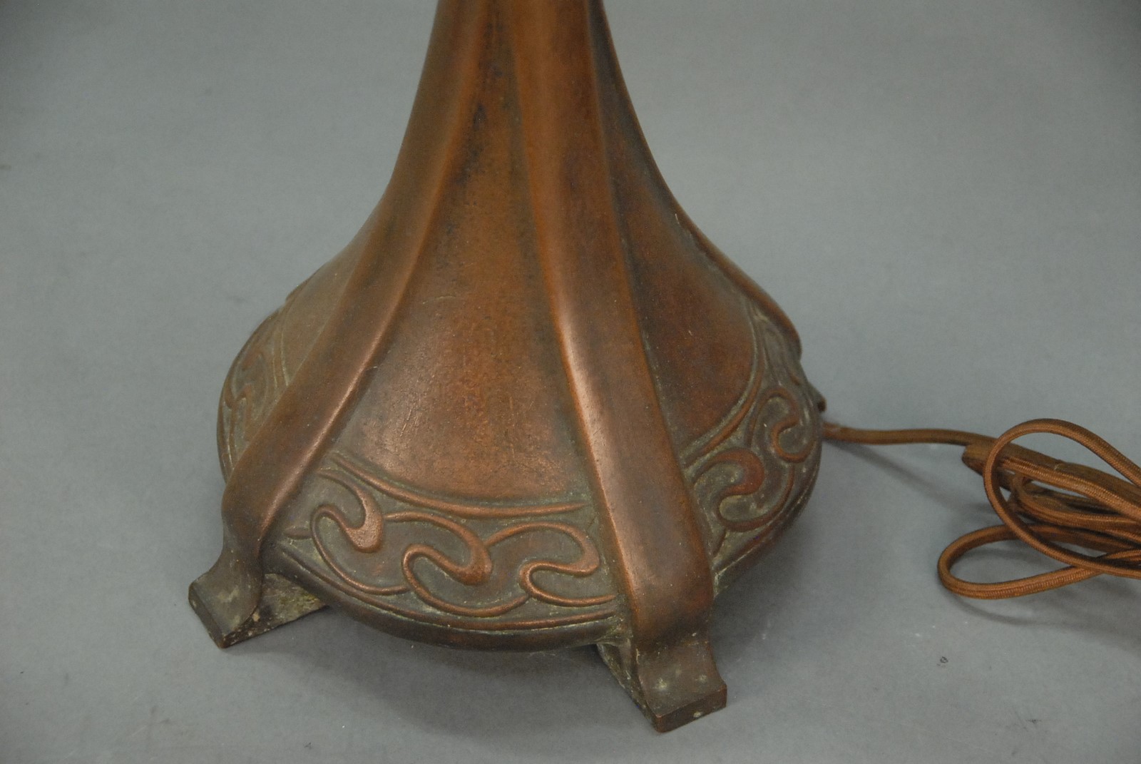 Lot 378: Handel lamp base with original sockets on tapered shaft set on four feet, signed Handel on base rewired. ht. 24 1/2 in.
