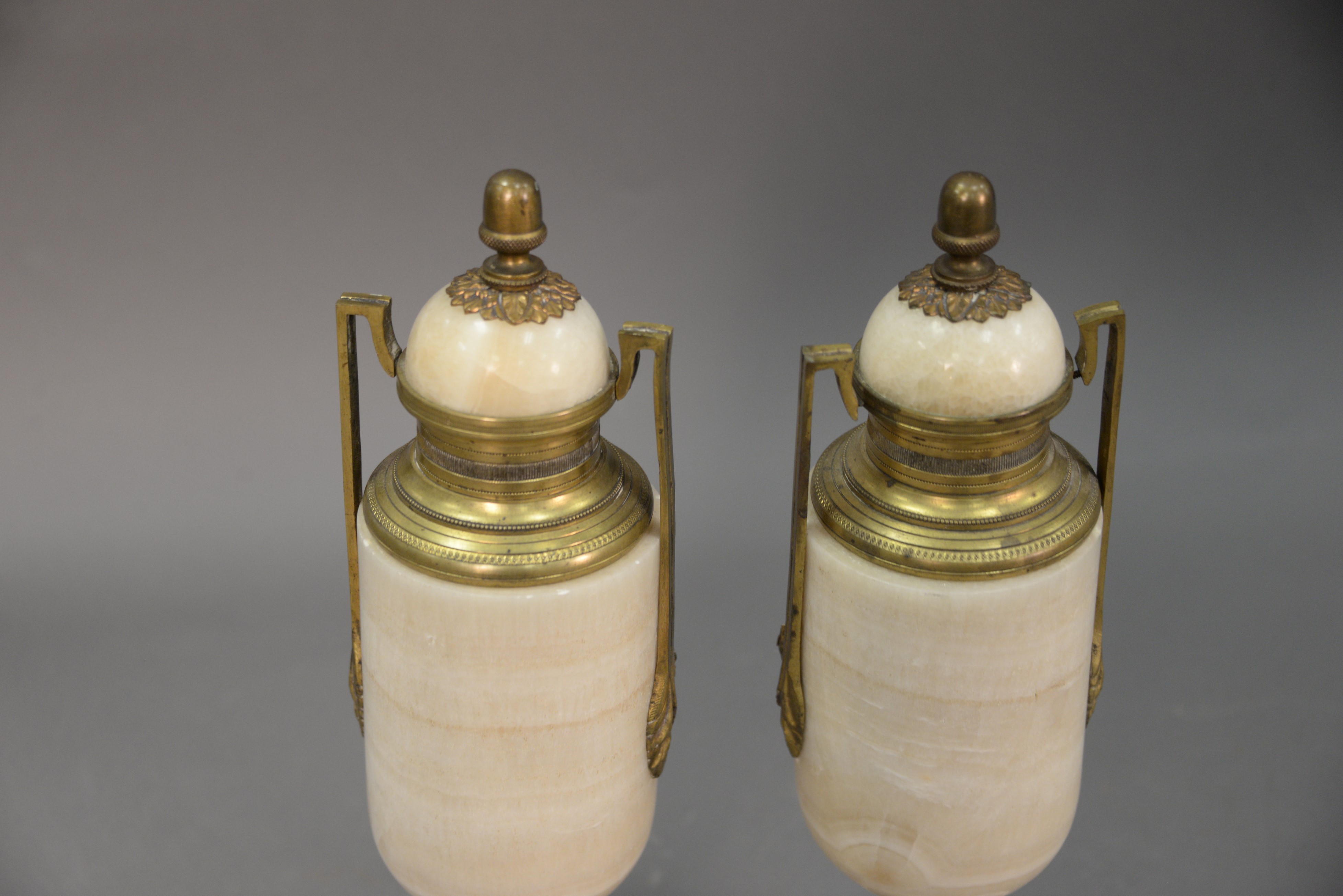 Pair of marble and bronze urns. ht. 15 in.