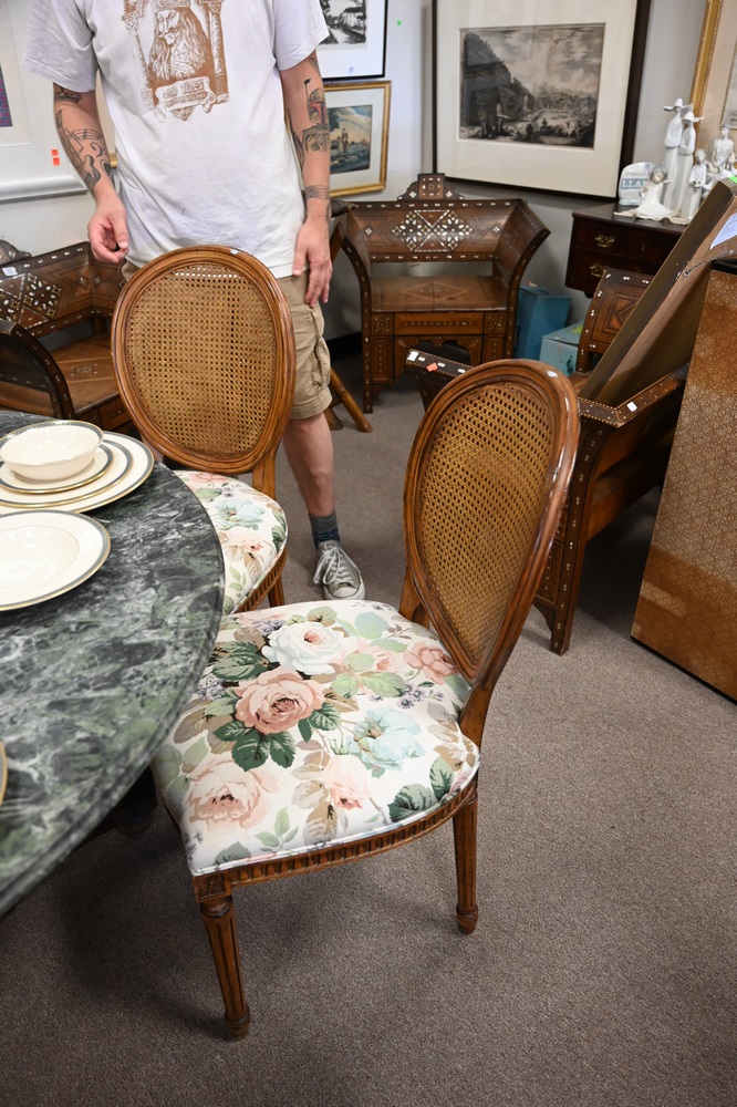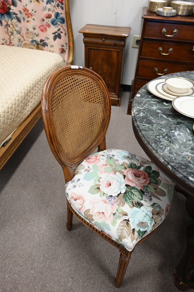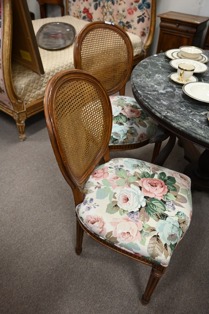 Lot 378: Set of French Style Side Chairs, having caned backs, height 37 inches.