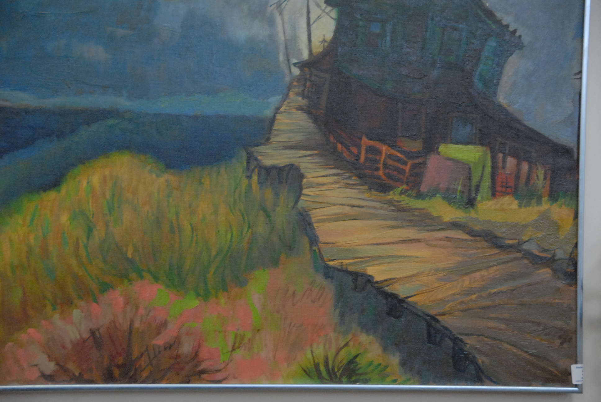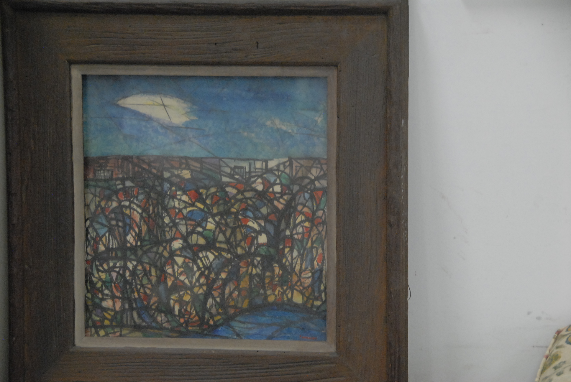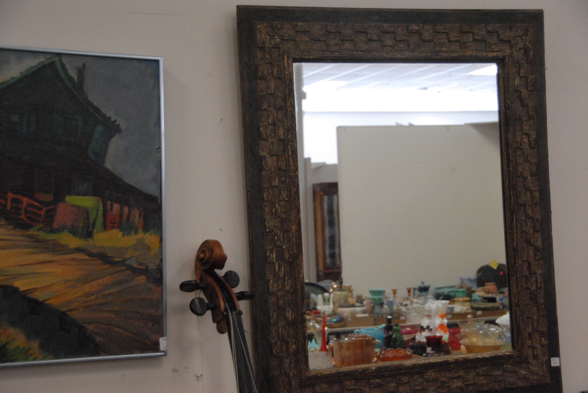Seven framed pieces, Hellman, Mitton, Pollzk, and a framed mirror.
