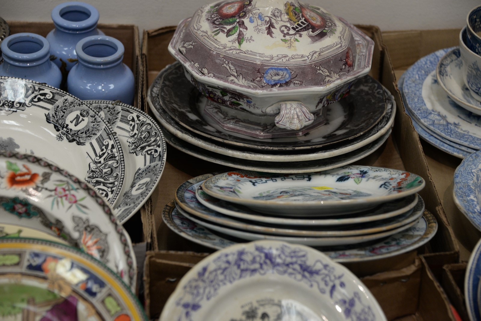 Six box lots to include Staffordshire, ironstone covered tureen and plates, Royal Doulton plate, two Napolean plates, etc.