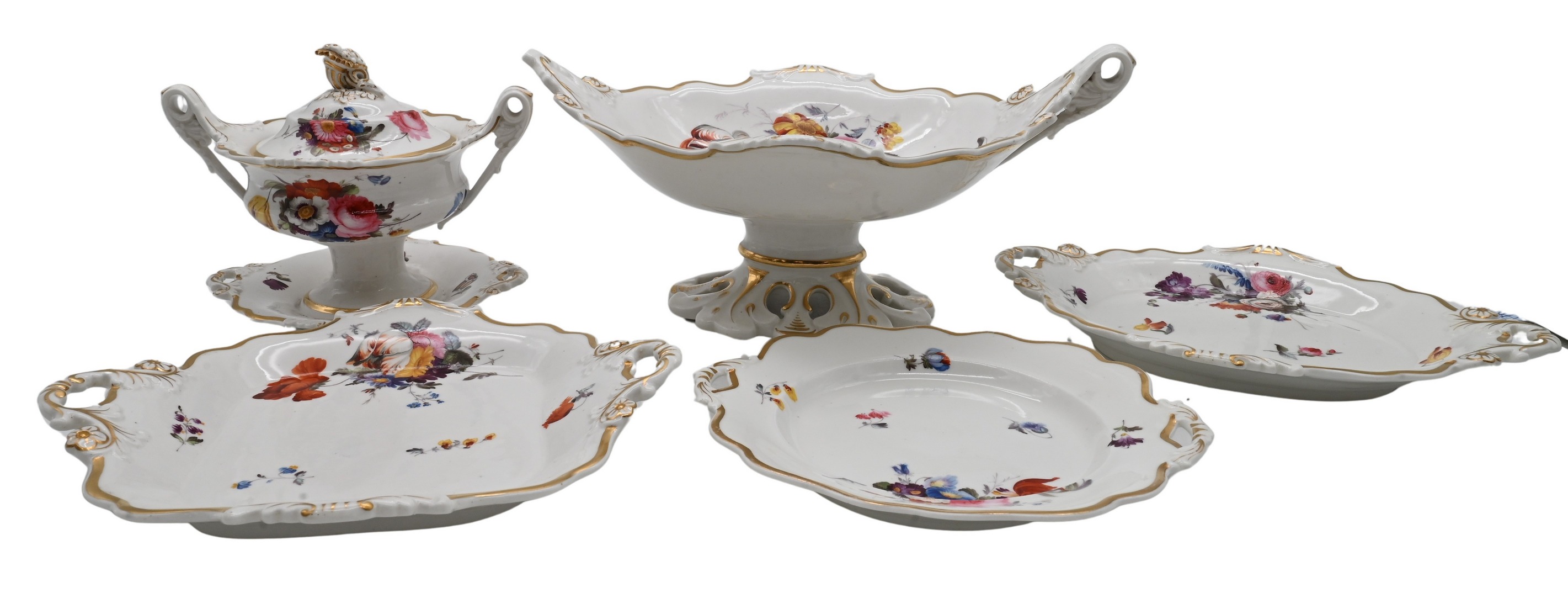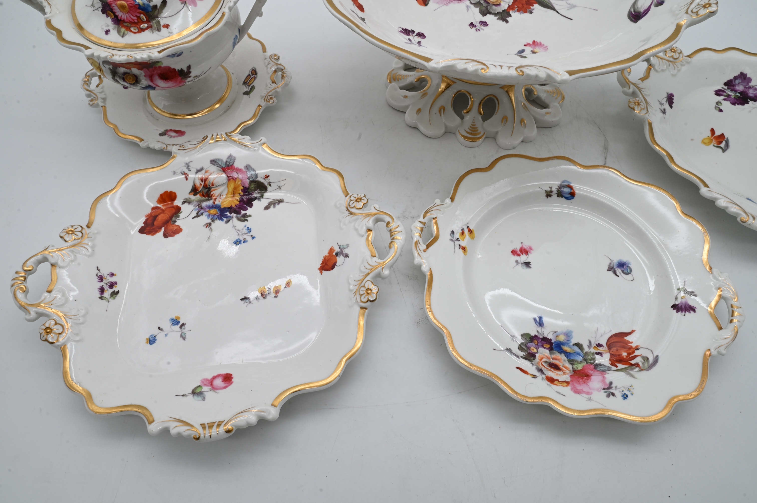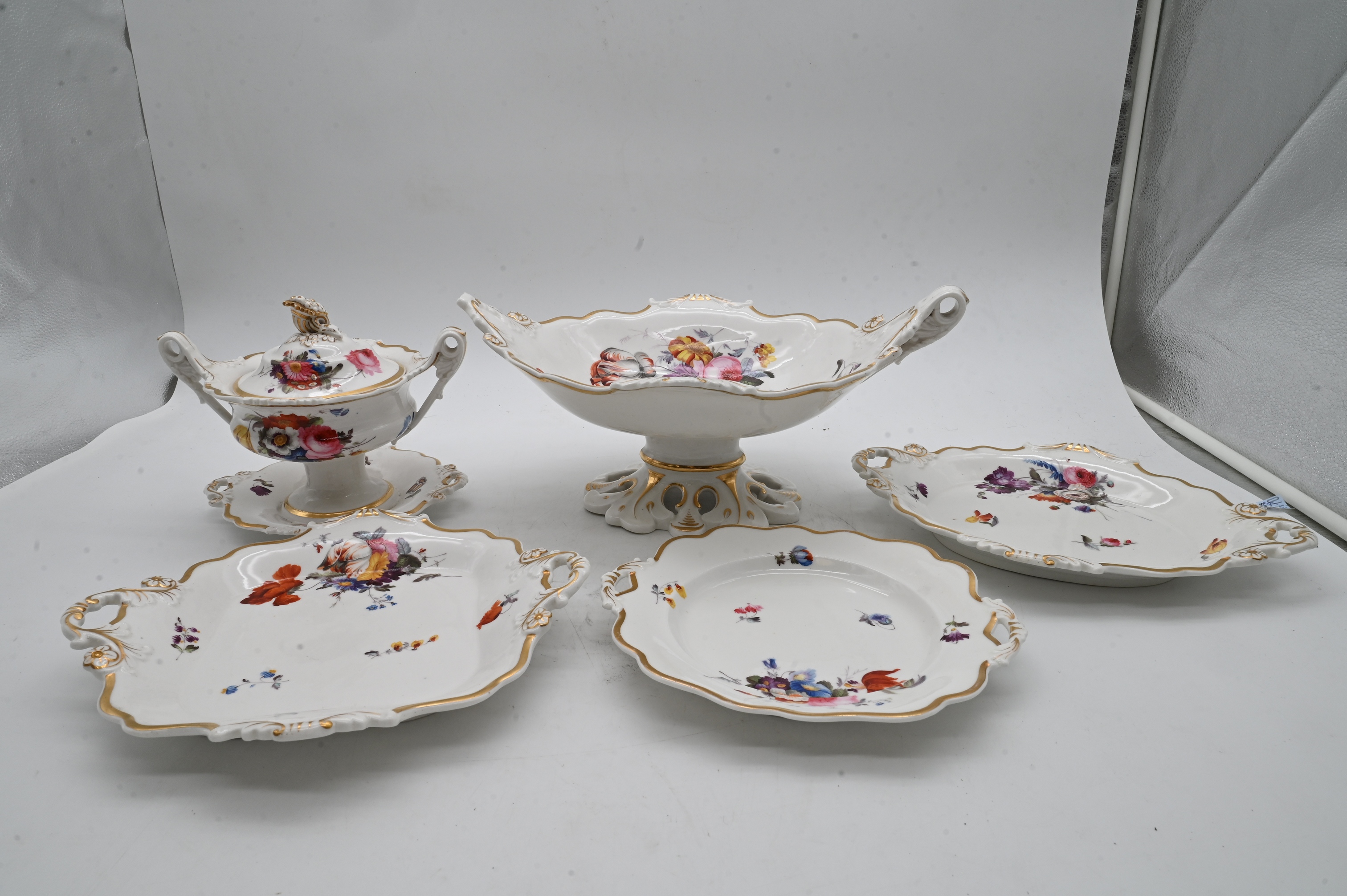 Lot 379: 27 Piece English Porcelain Floral Decorated Dessert Service