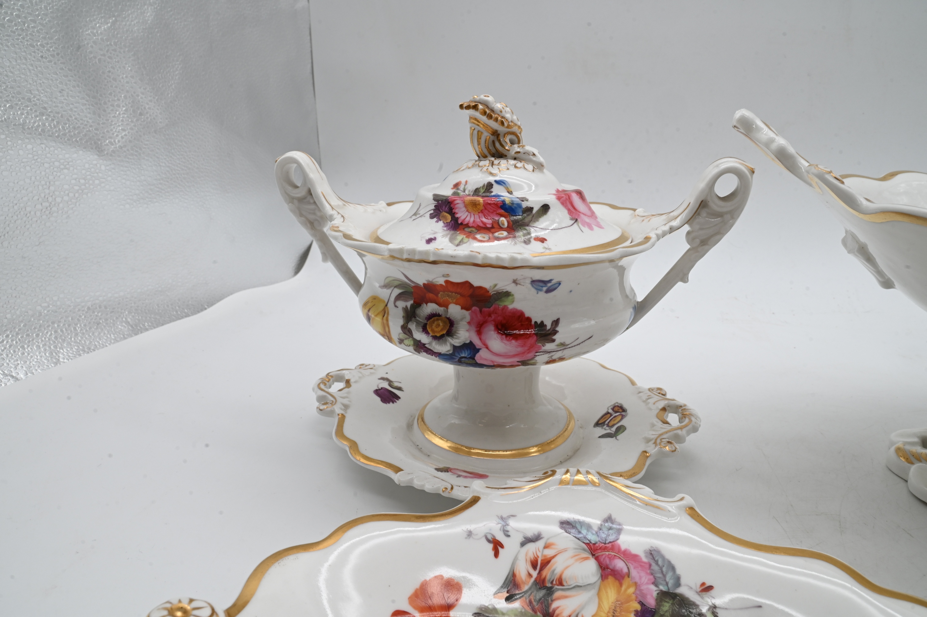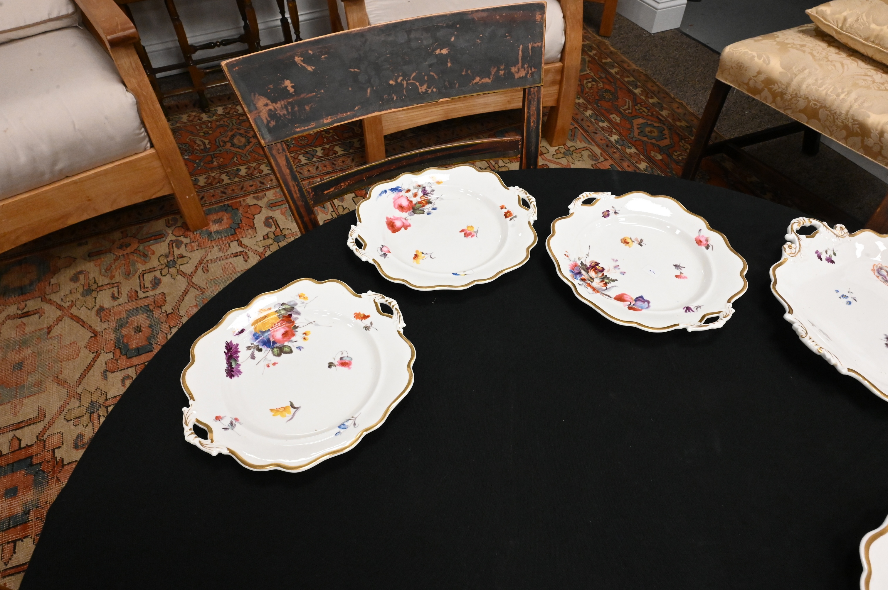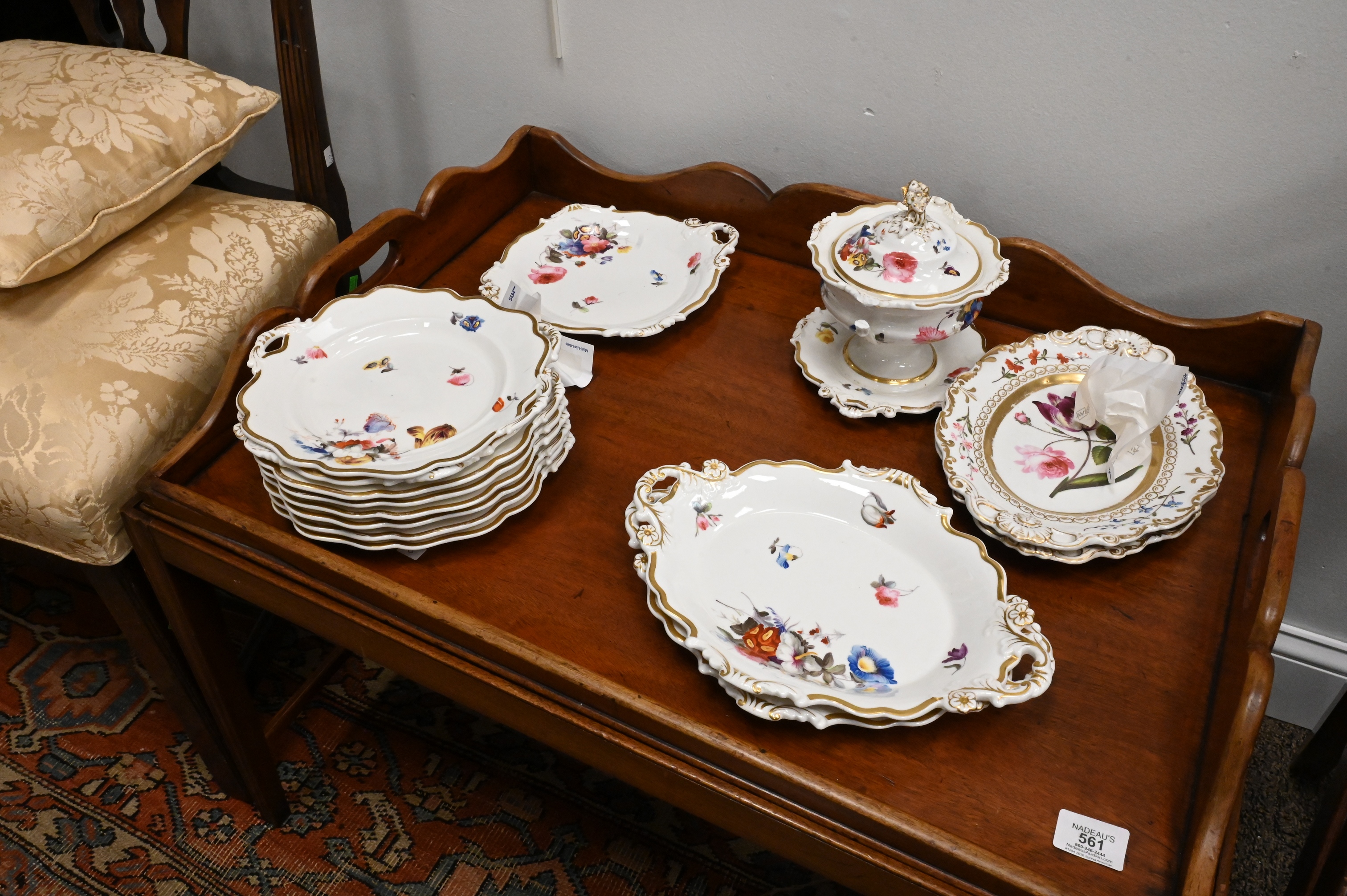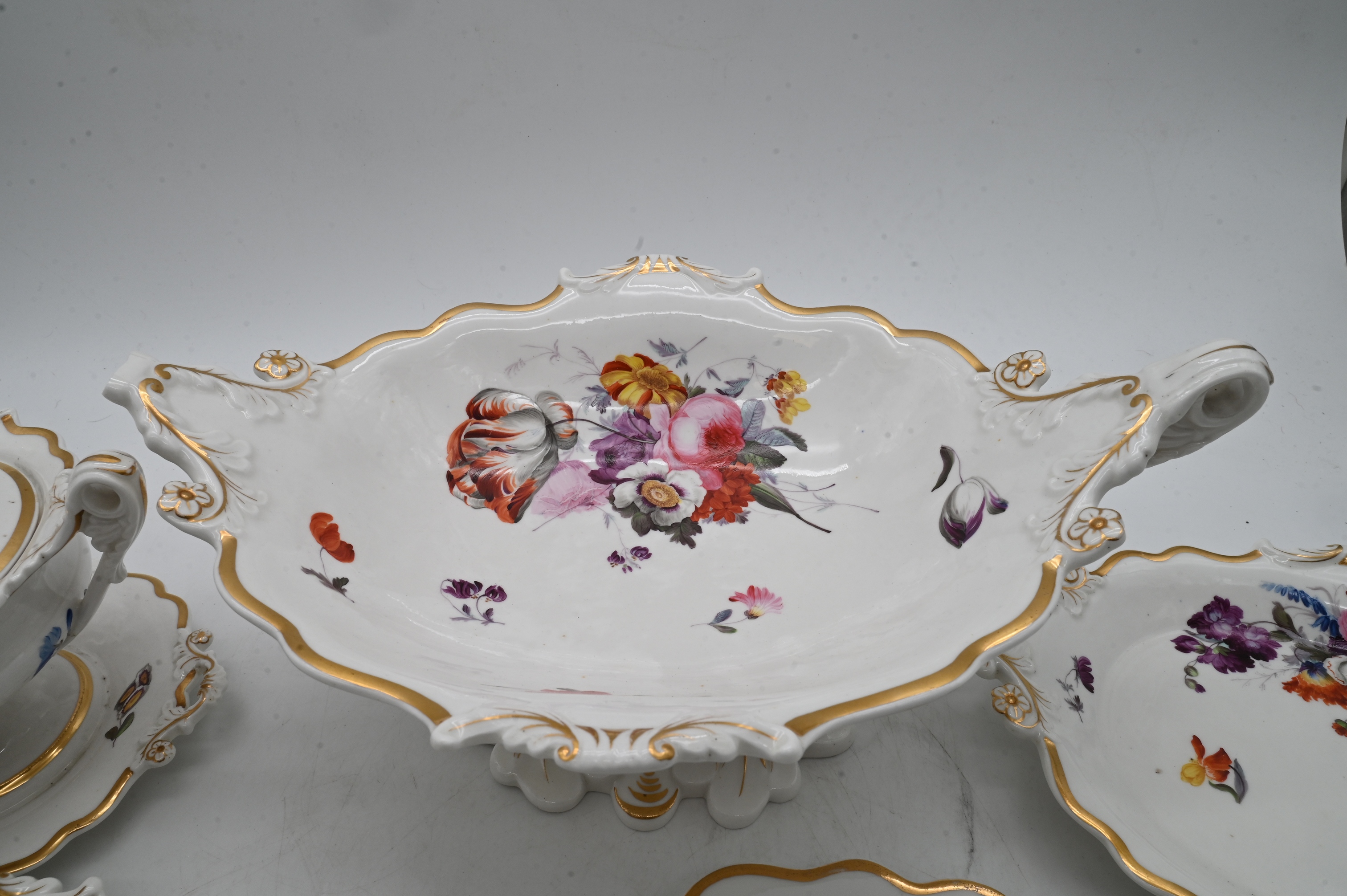 Lot 379: 27 Piece English Porcelain Floral Decorated Dessert Service