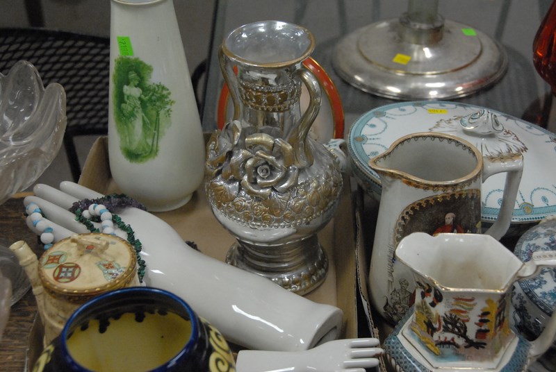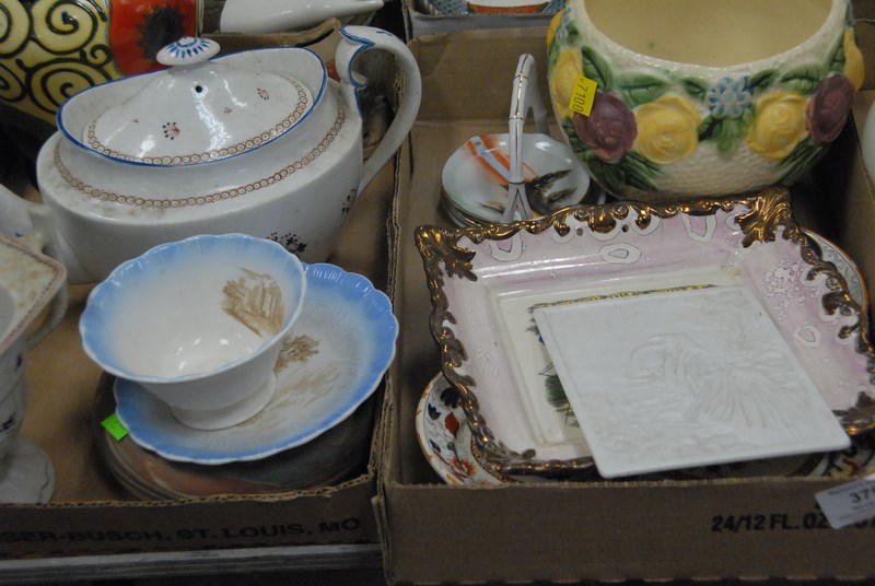Four box lots including vases, pitchers, lithopane, export china, and more.