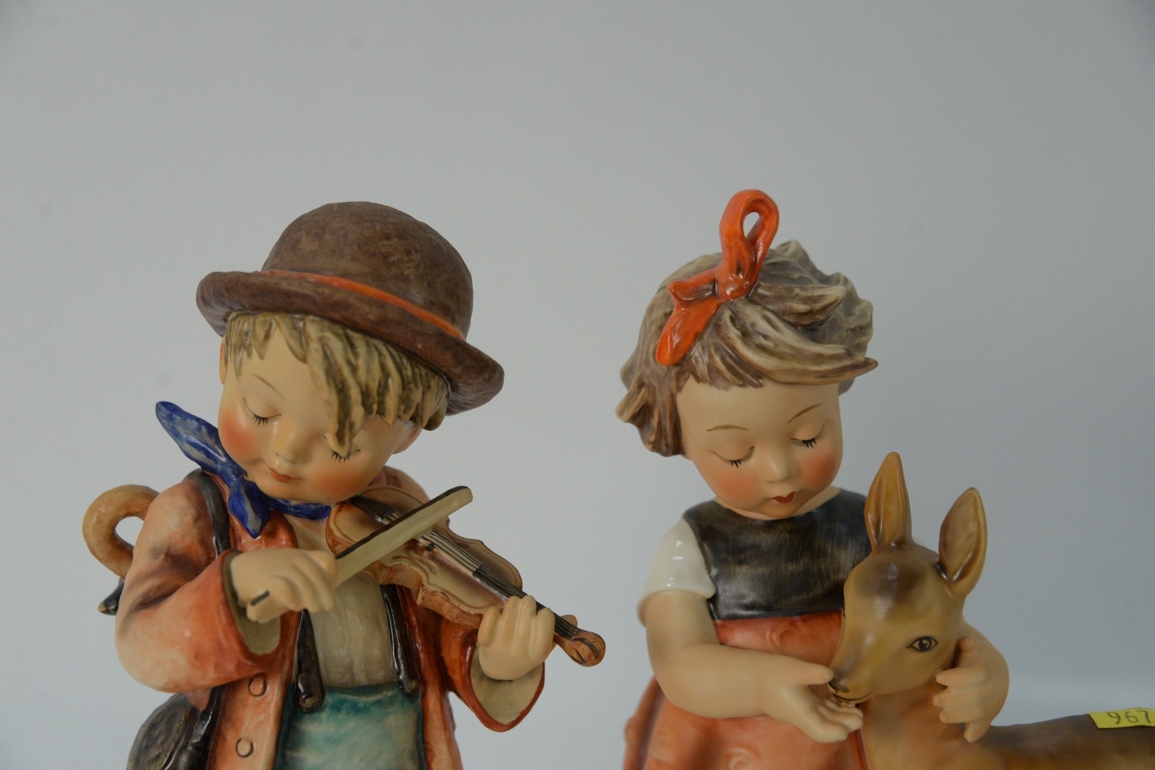 Lot 379: Pair of Large Hummel’s, to include ‘Little Fiddler’ and ‘Friends’, each marked to the underside and inscribed on the base, heights 11 inches and 10 1/2 inches.
