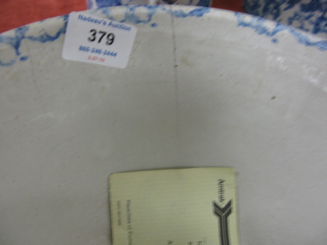 Six piece lot of sponge decorated stoneware: four pitchers and two bowls.