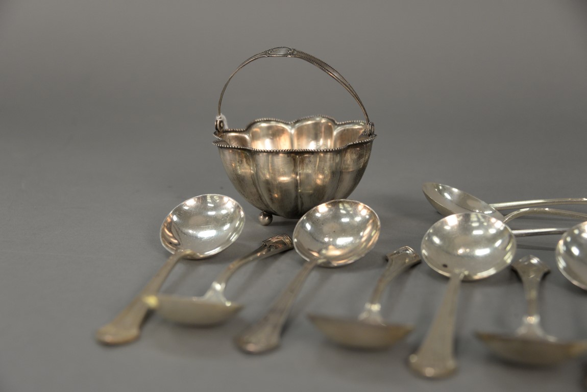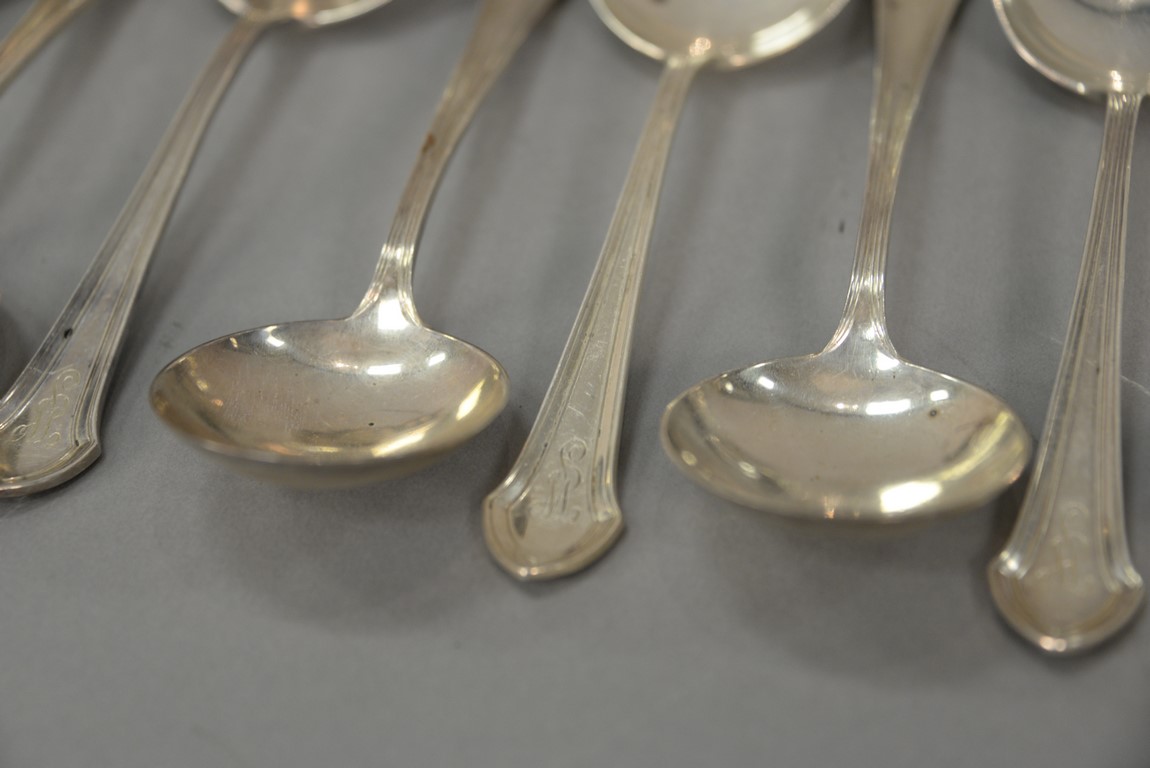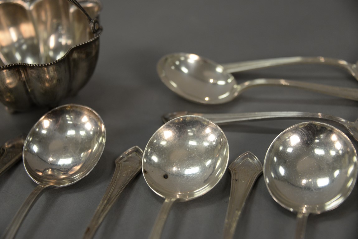 Sterling silver lot to include 12 soup spoons and a small bowl. 20.4 t oz.
