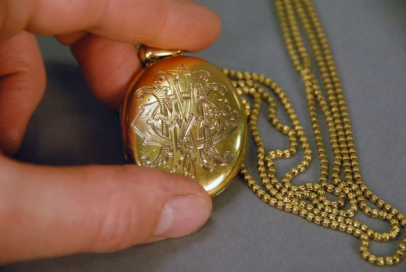 14K gold oval locket with rose gold star set with diamond, approximately .50 cts along with a 10K gold large slide chain. total weight 54.9 grams lg. 31in.