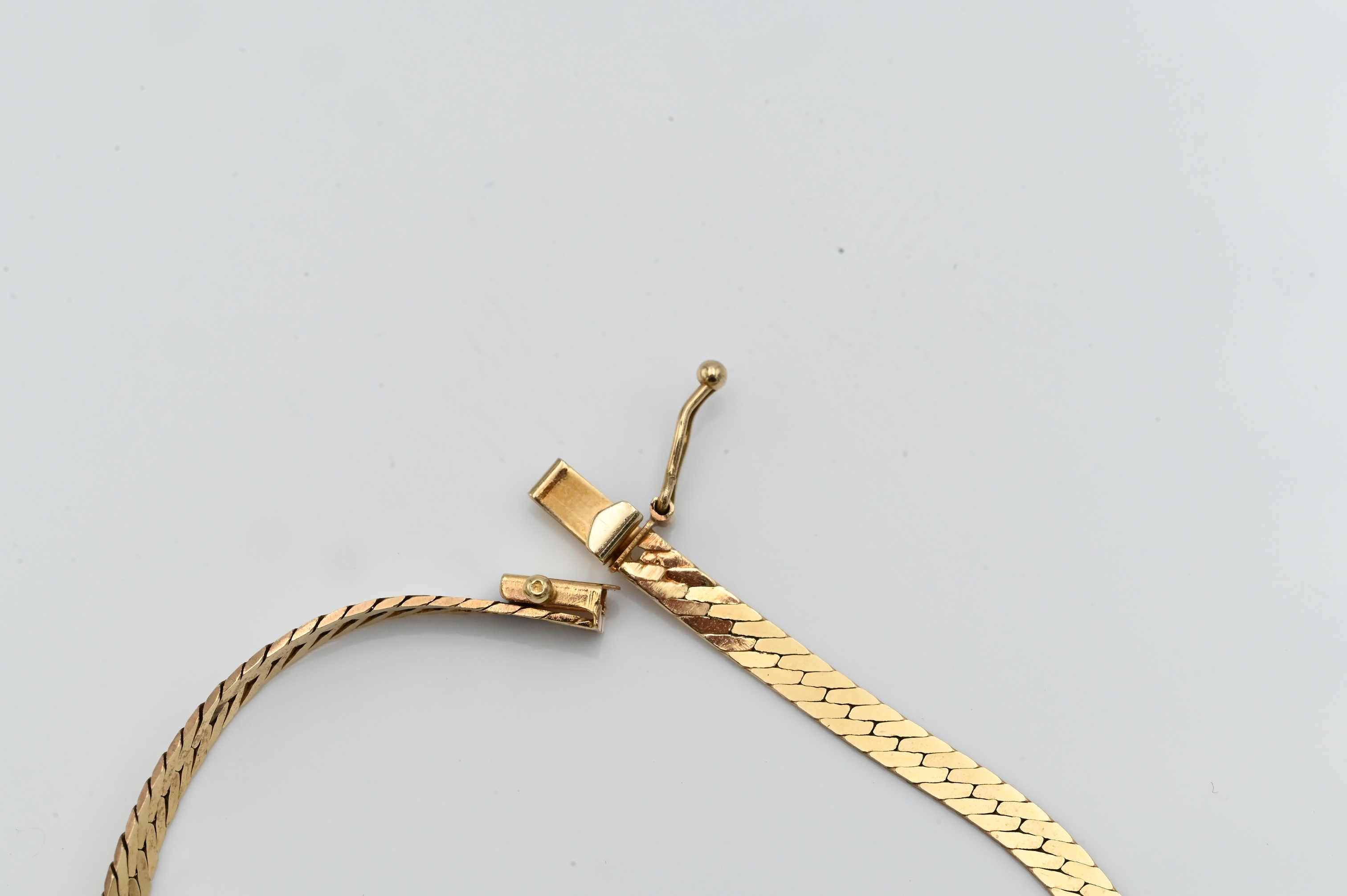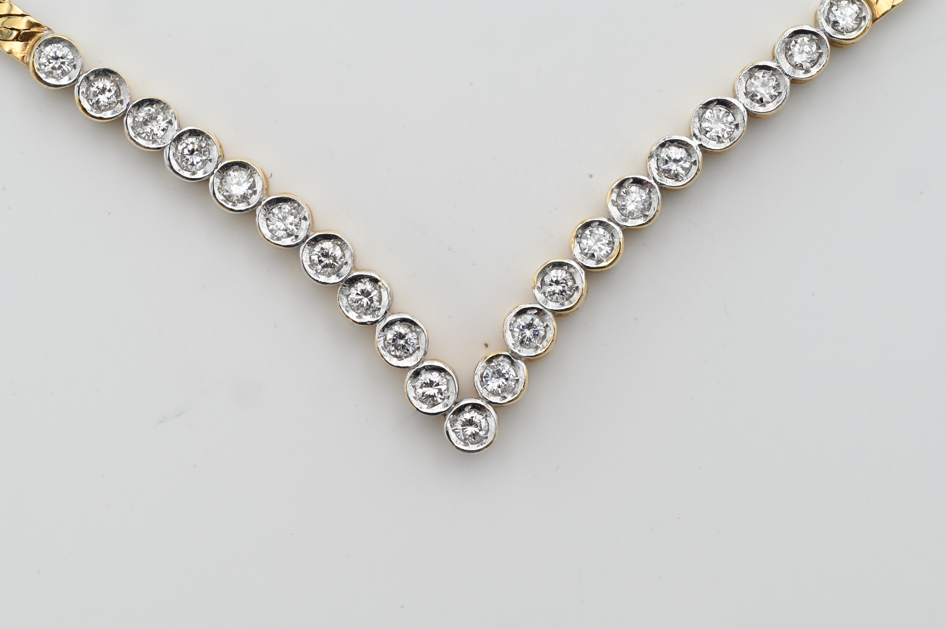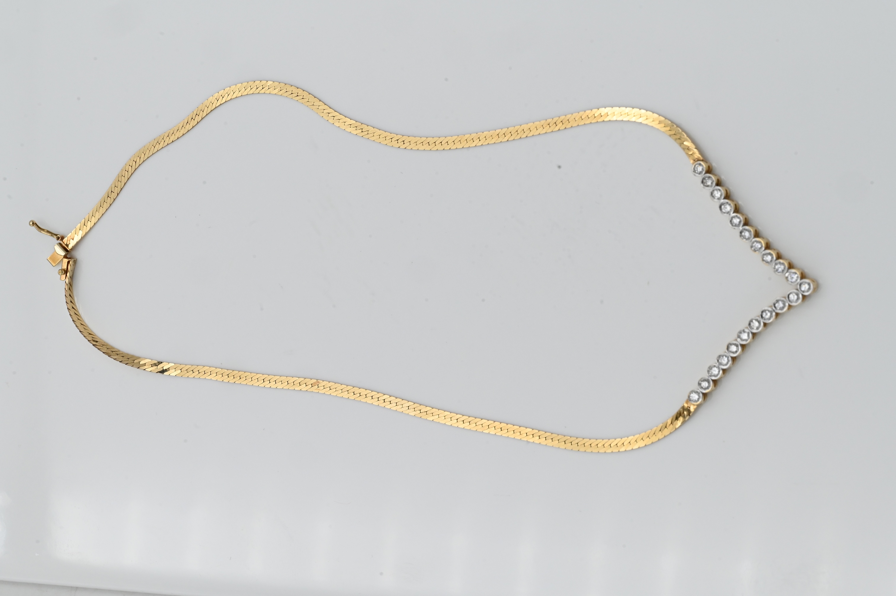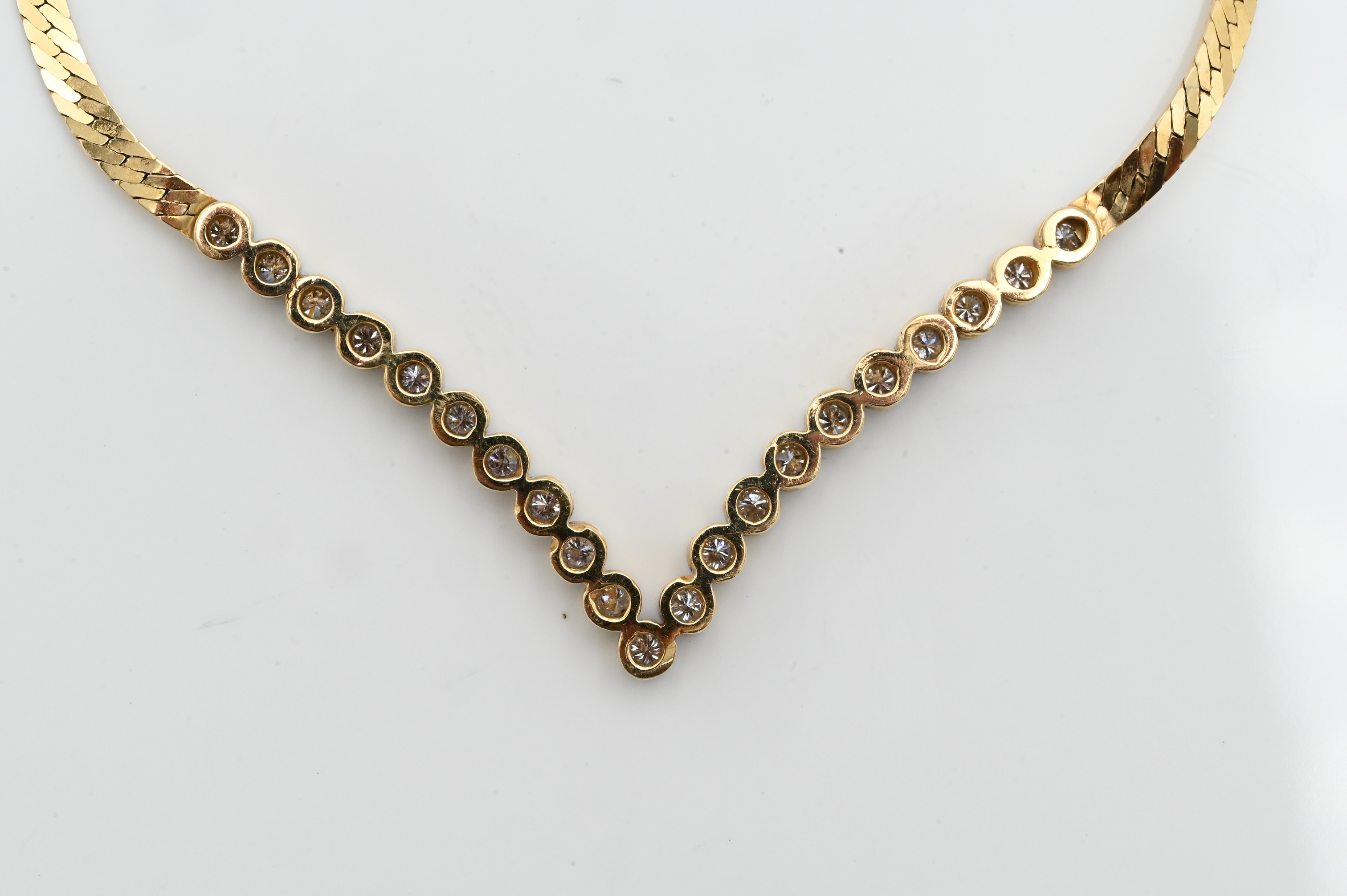 Lot 38: 14K Yellow Gold Necklace with Flat Chain in V Style with Diamonds