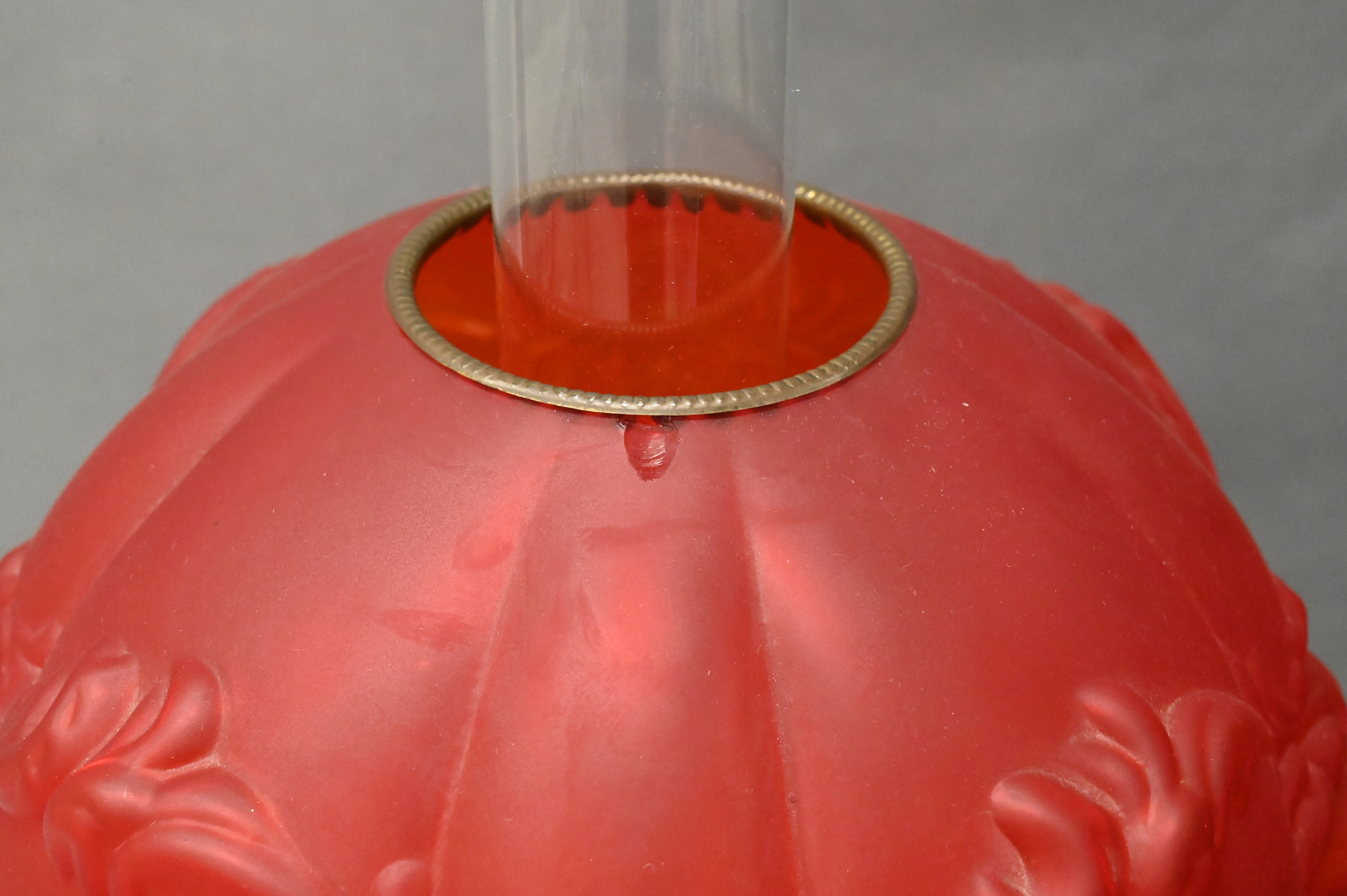 Lot 38: Frosted Cranberry Glass Gone with the Wind Lamp