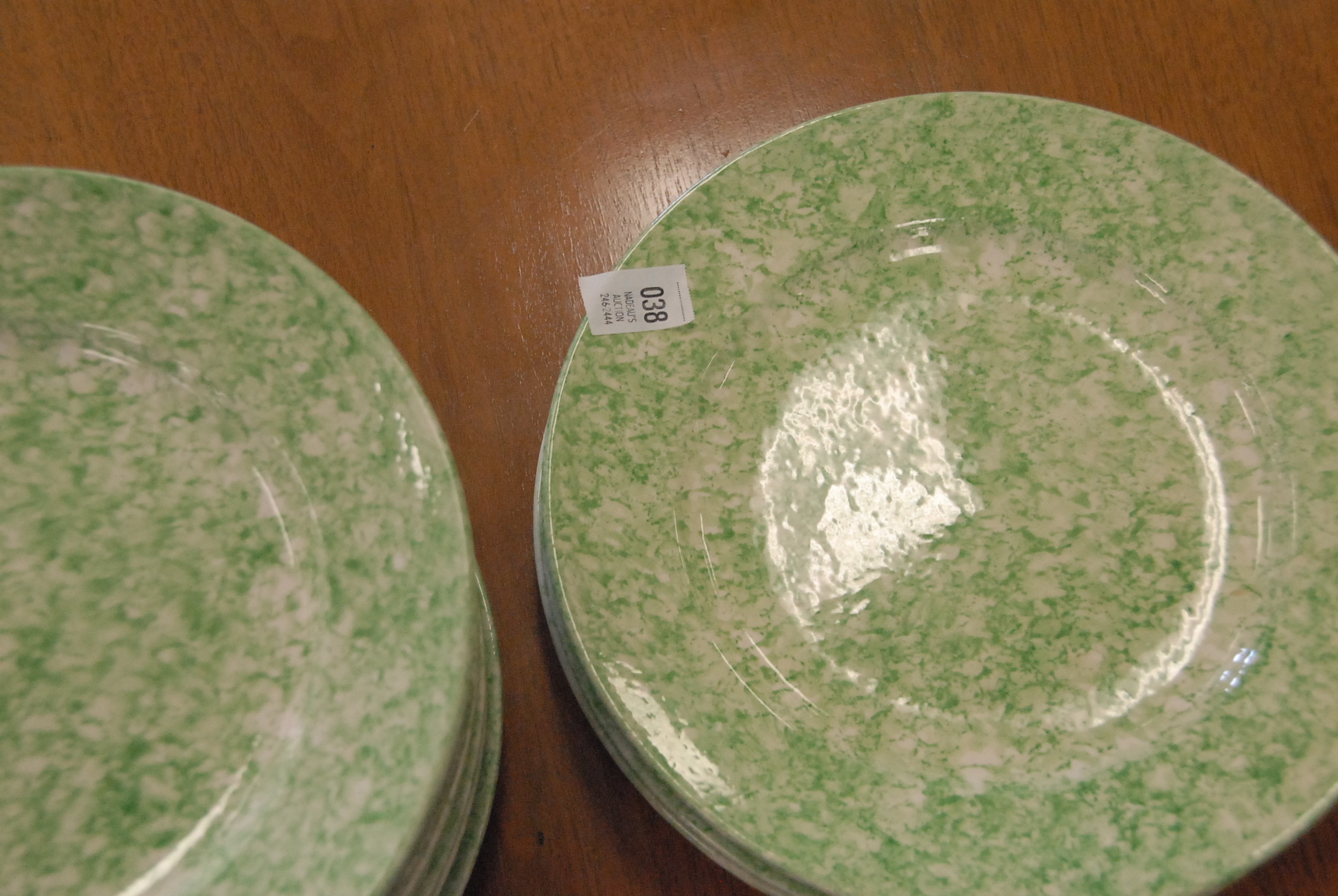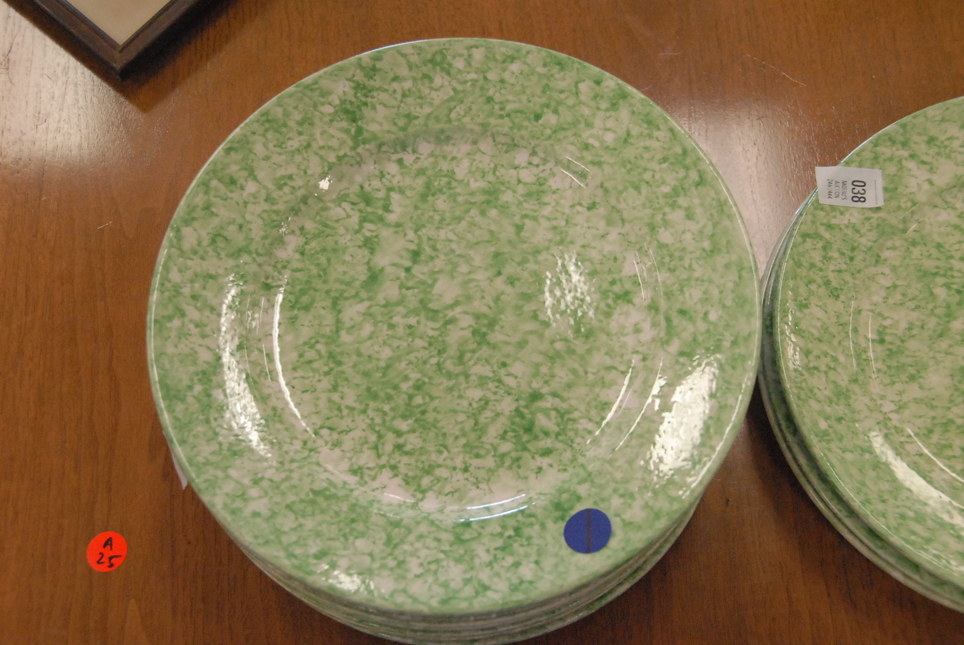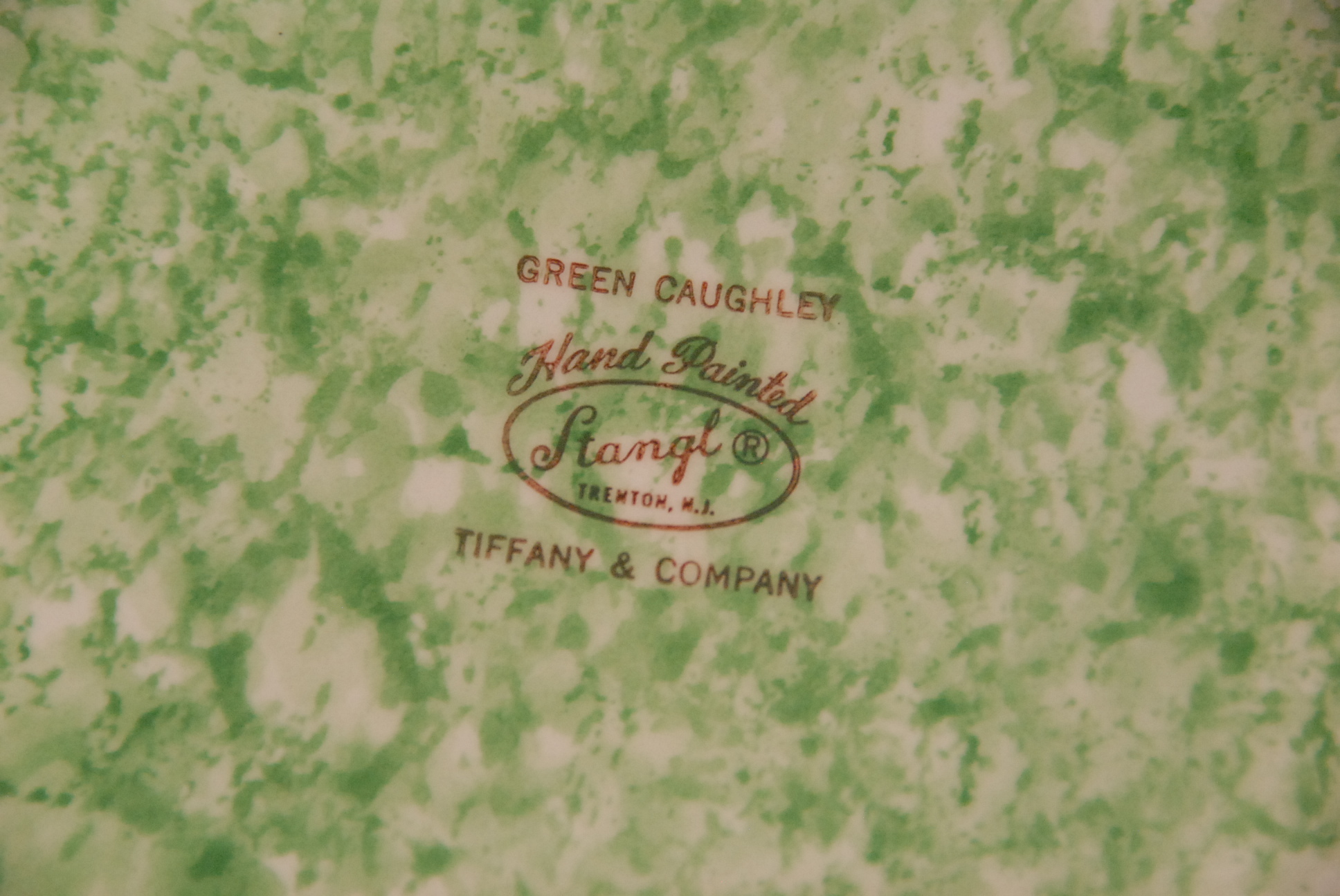 Lot of Stangl pottery, set of 12 green Caughley plates, marked Tiffany & Co.