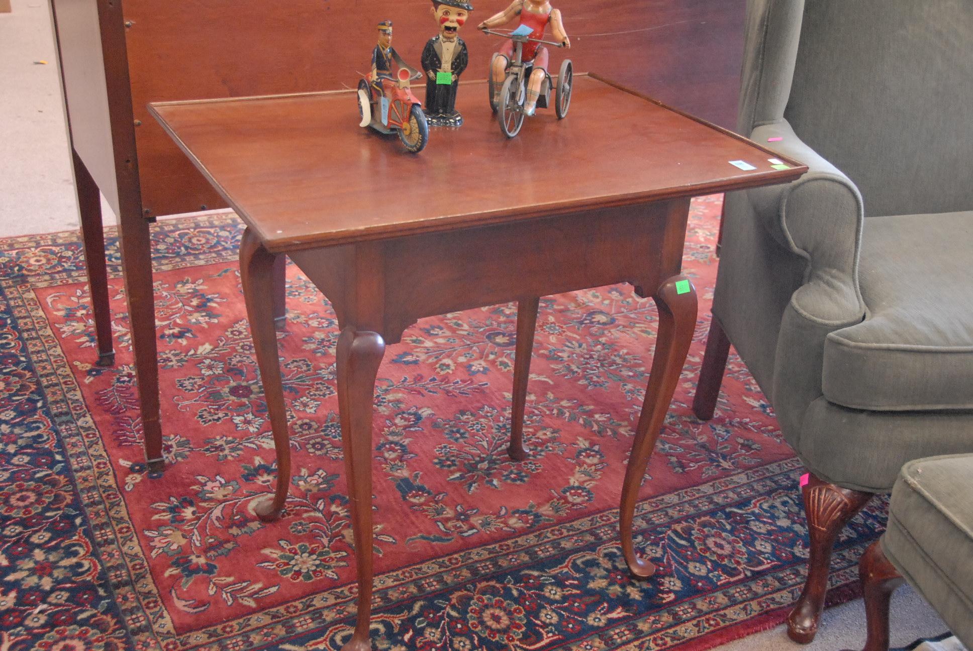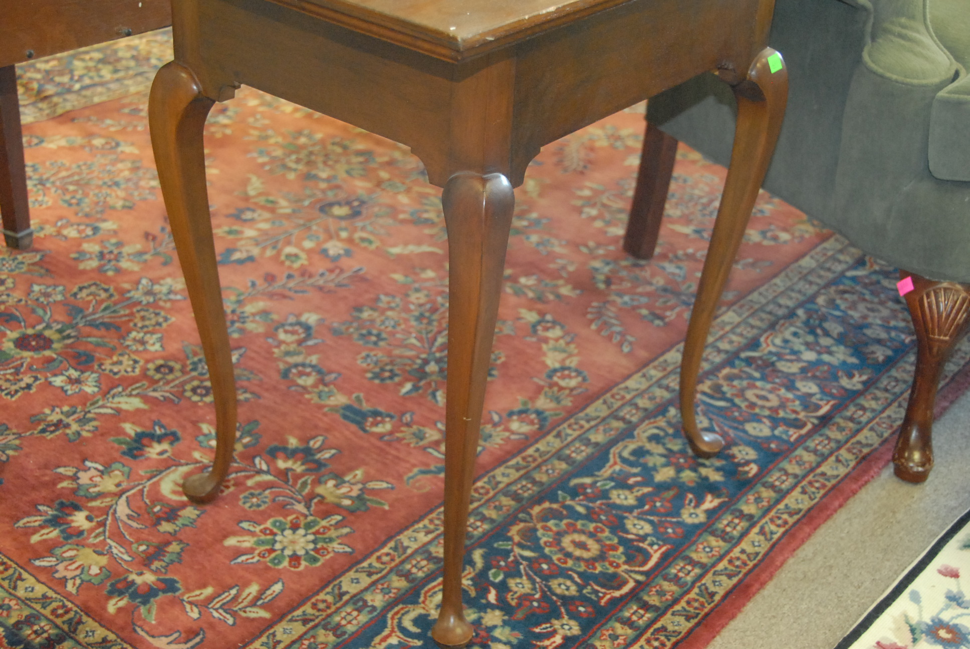Lot 38: Mahogany Queen Anne style tea table molded edge having Arne Ahlberg label, ht. 27in. top: 21 x 29.