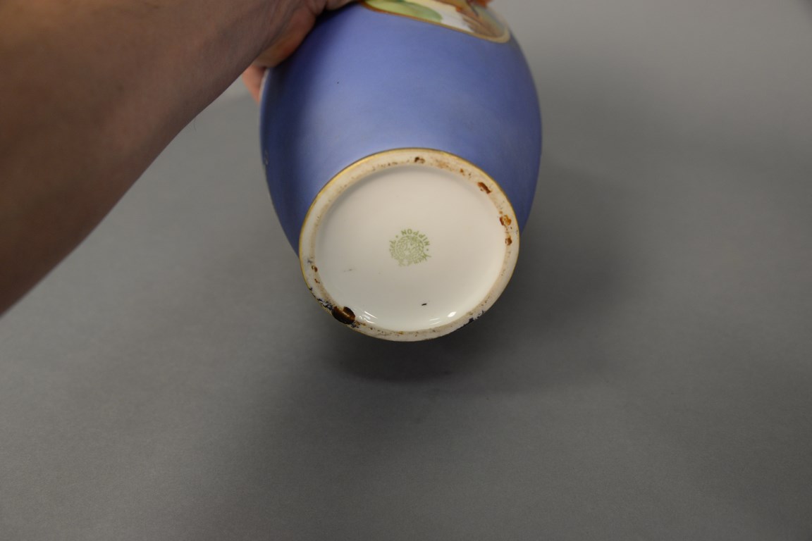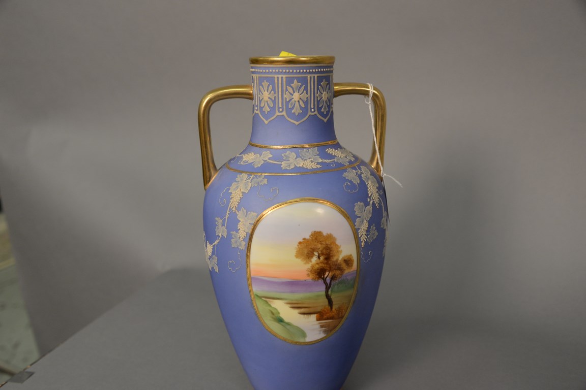 Nippon vase with applied grapes and vines, ht. 13 in.