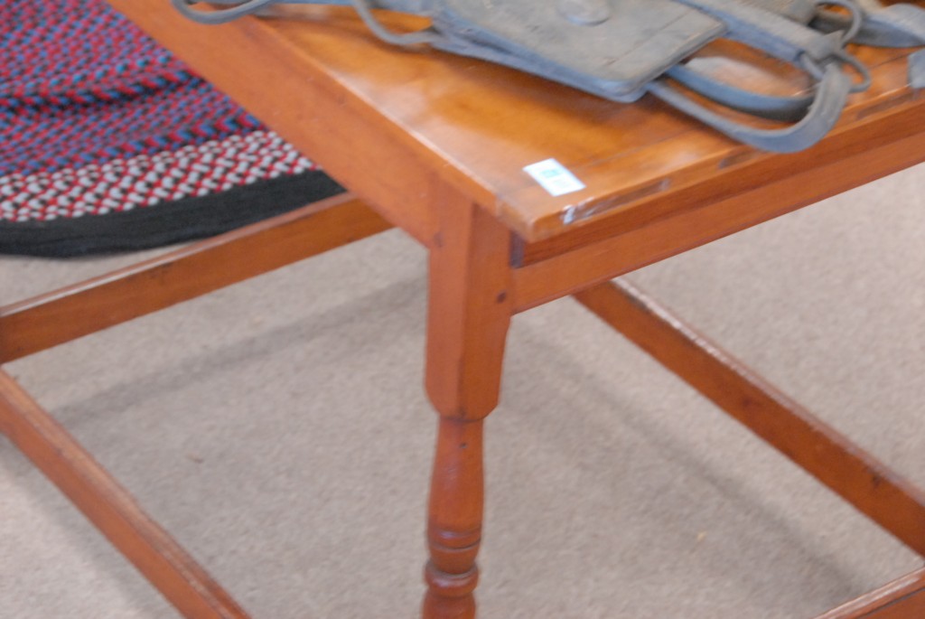 Primitive one drawer table with breadboard top.