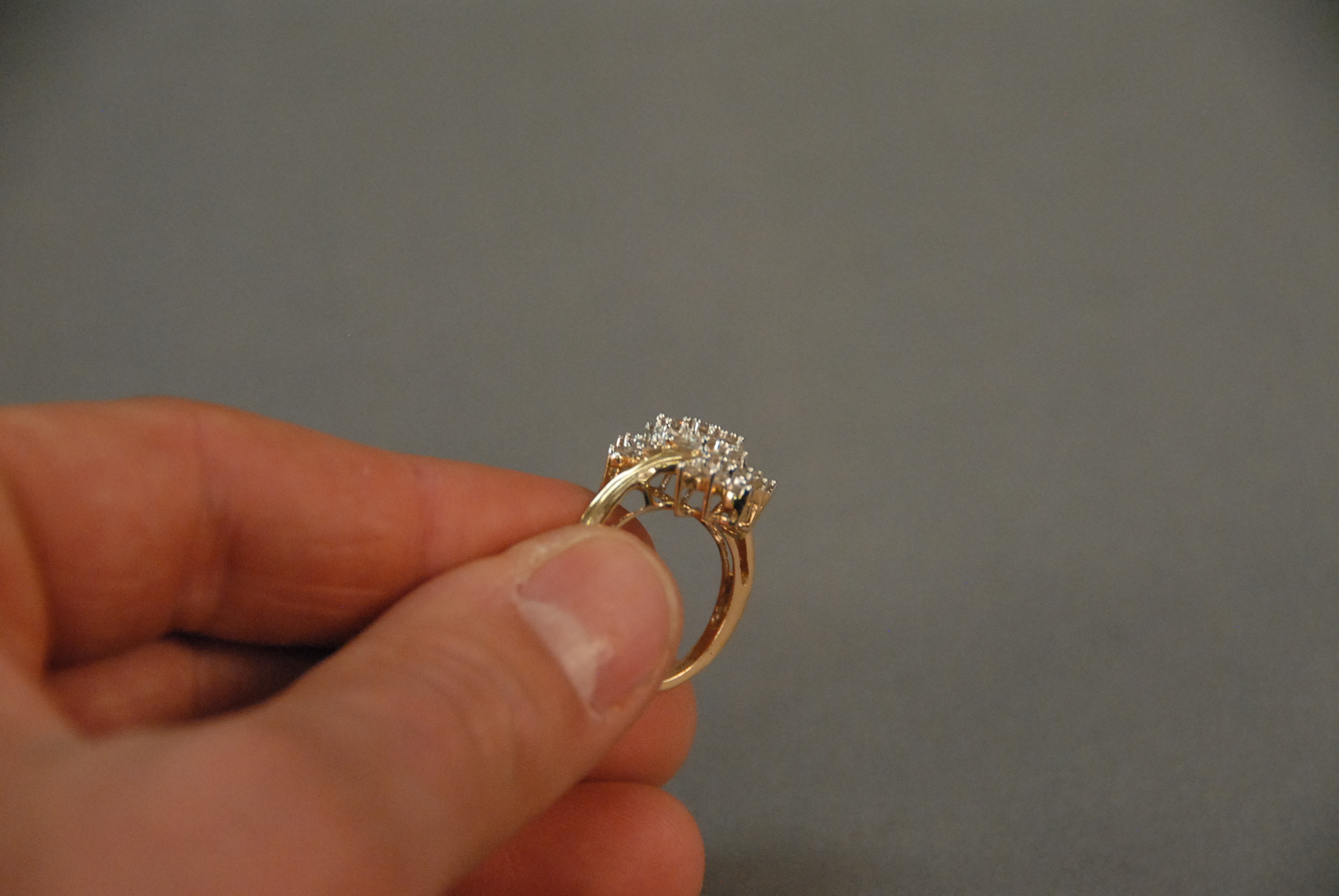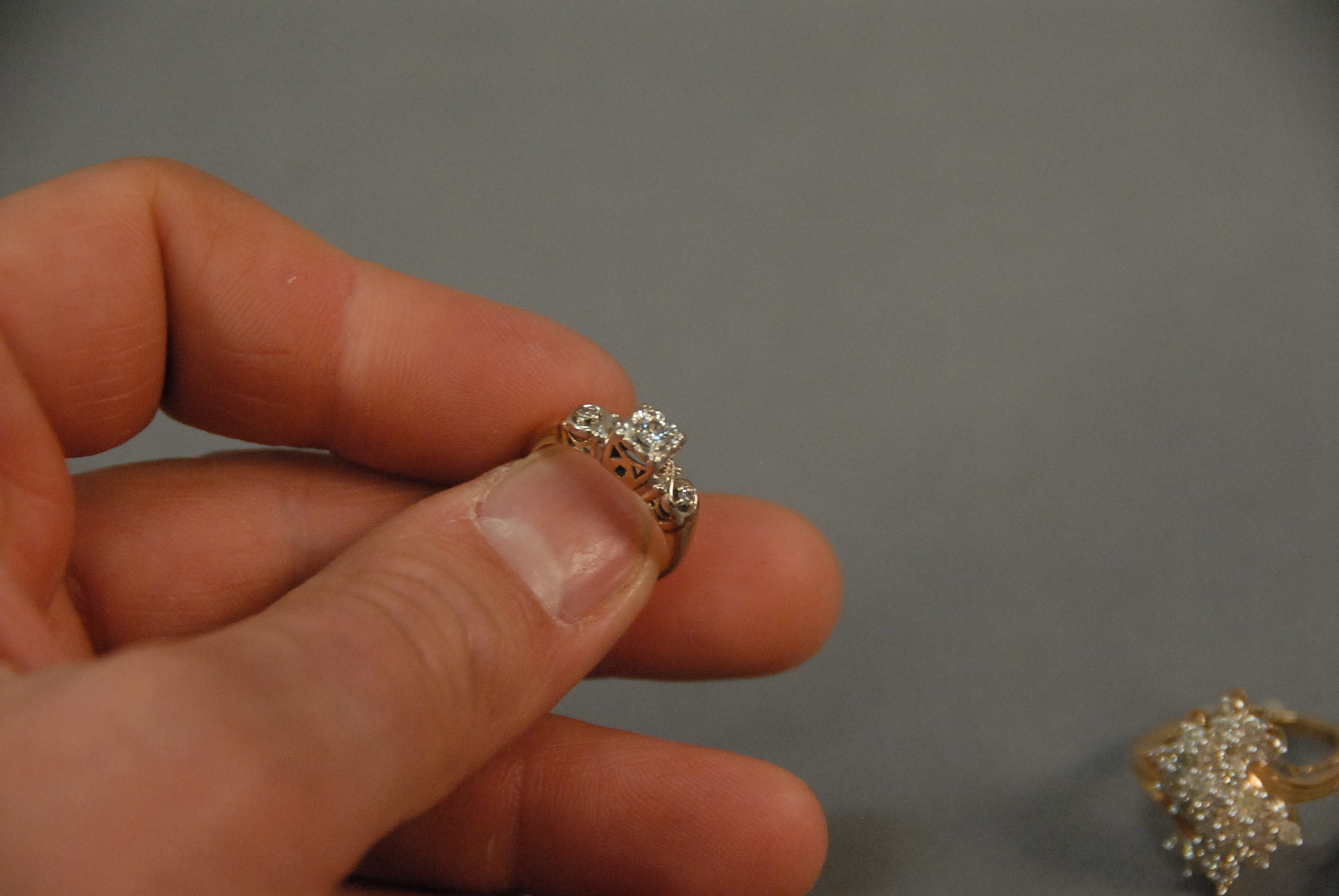 Three diamond rings, one platinum, one 14K gold, and one 10K gold. 10.6 grams total weight