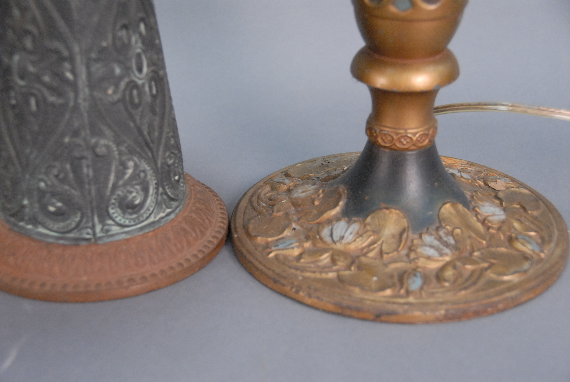 Two piece lot, small panel lamp ht. 15in. and lamp base, ht. 24 1/2in.
