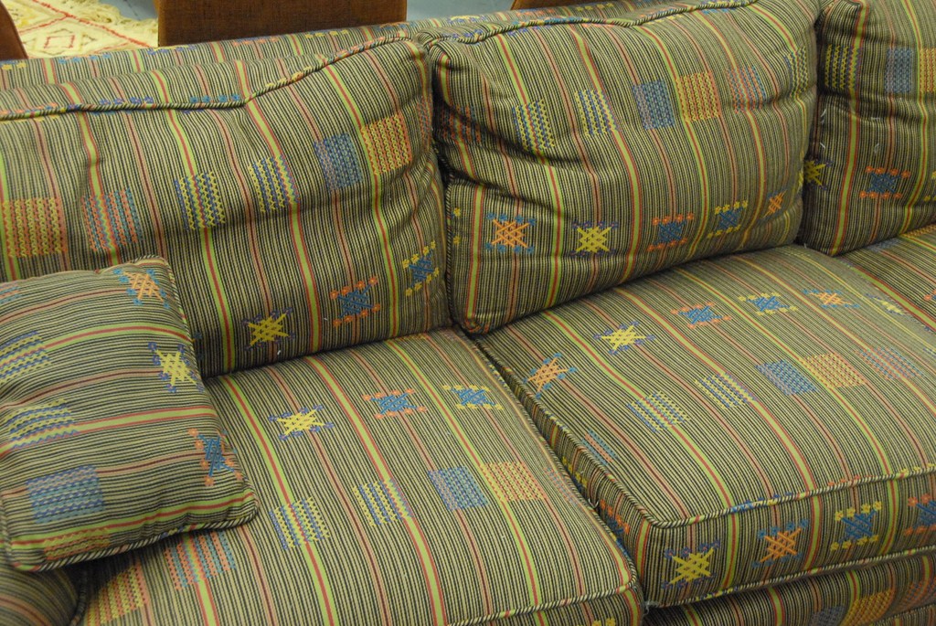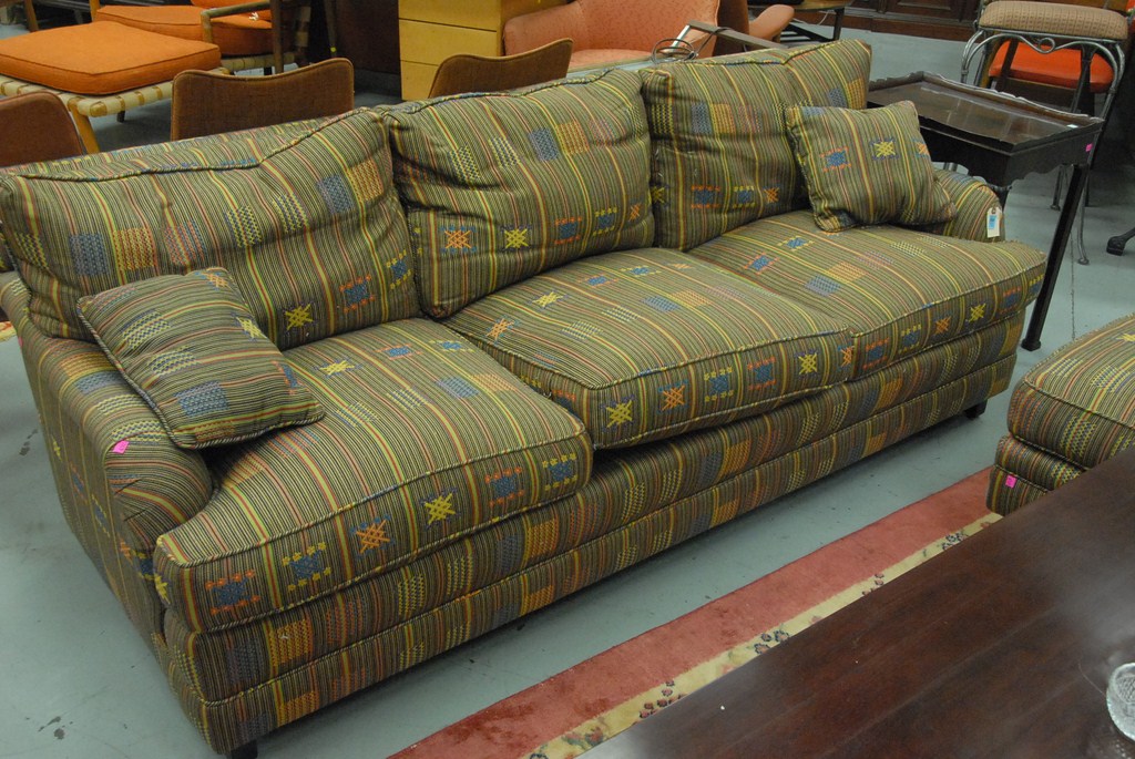 Upholstered contemporary sofa and ottoman, lg. 7ft. 2in. dp. 36in.