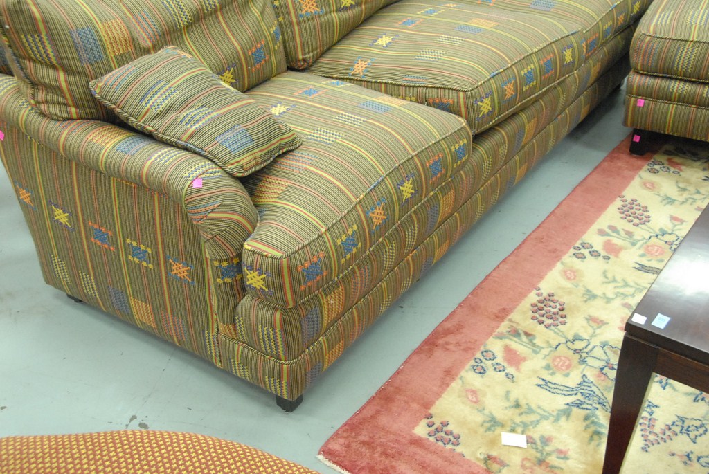 Lot 38: Upholstered contemporary sofa and ottoman, lg. 7ft. 2in. dp. 36in.