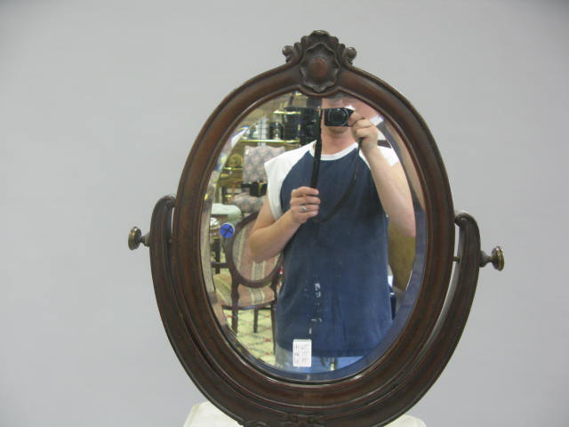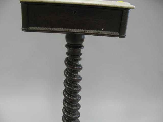 Victorian walnut marble top shaving mirror on a spiral carved base