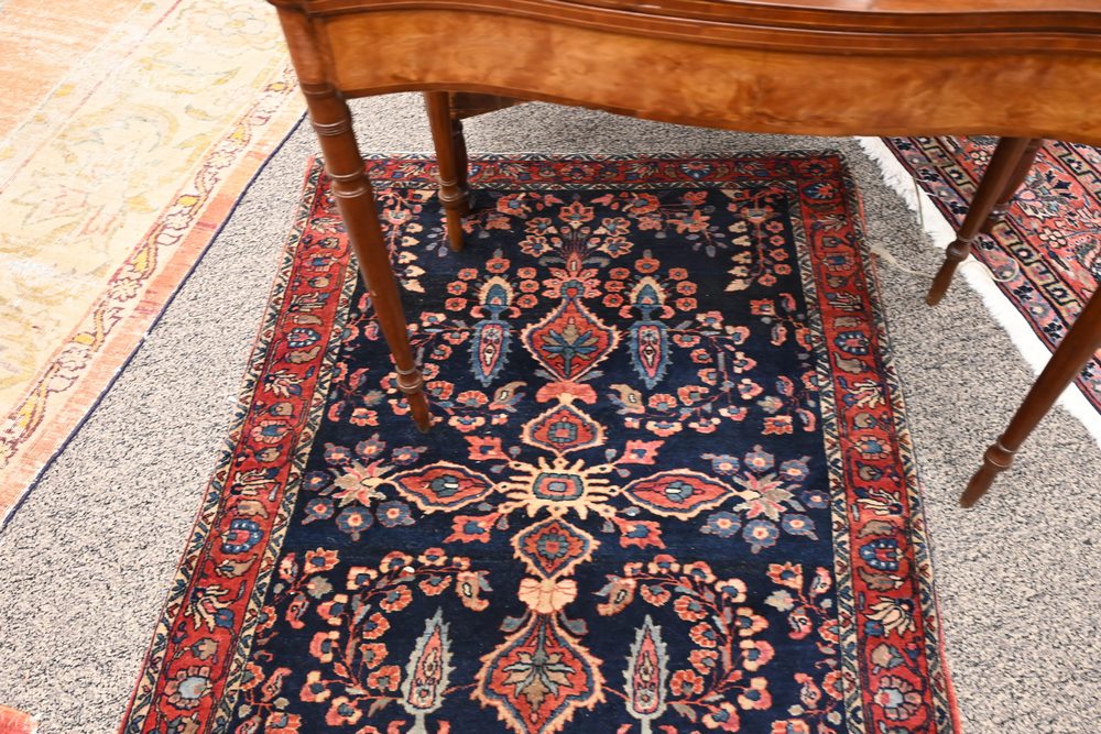 Lot 380: Blue Sarouk Oriental Throw Rug 3′ 4″ x 4′ 10″